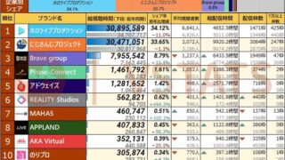嫌儲にじさんじとホロライブ、業績好調。再生数視聴時間ランキングも上位