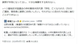 嫌儲ひろゆき「謝罪が手段になってるし、十分な補償をする気もない」辺野古転覆、抗議団体代表「補償が十分できるとは思っていない」