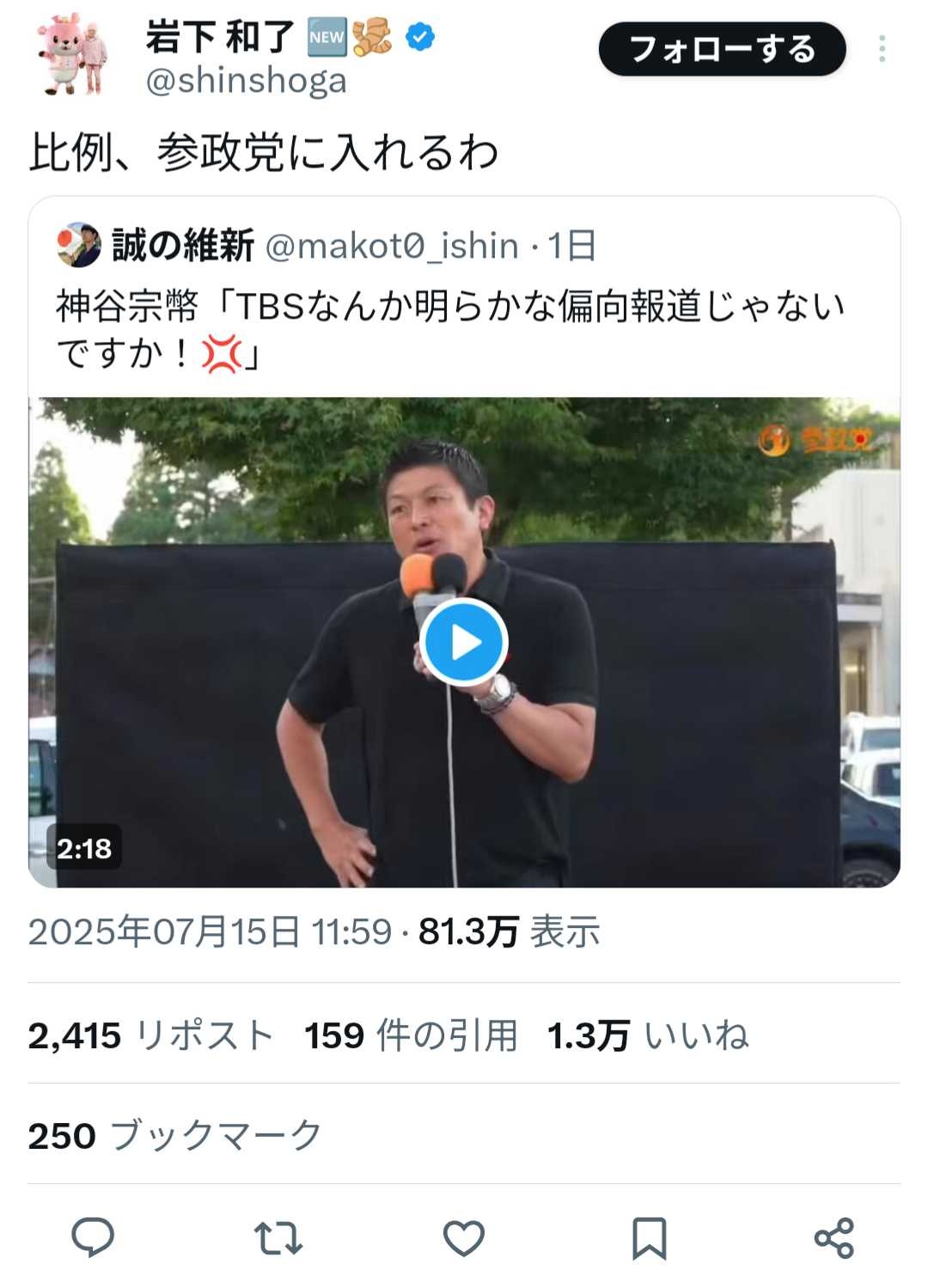 参政党に投票したらダメな理由、たった1つのスクショでバレてしまう
