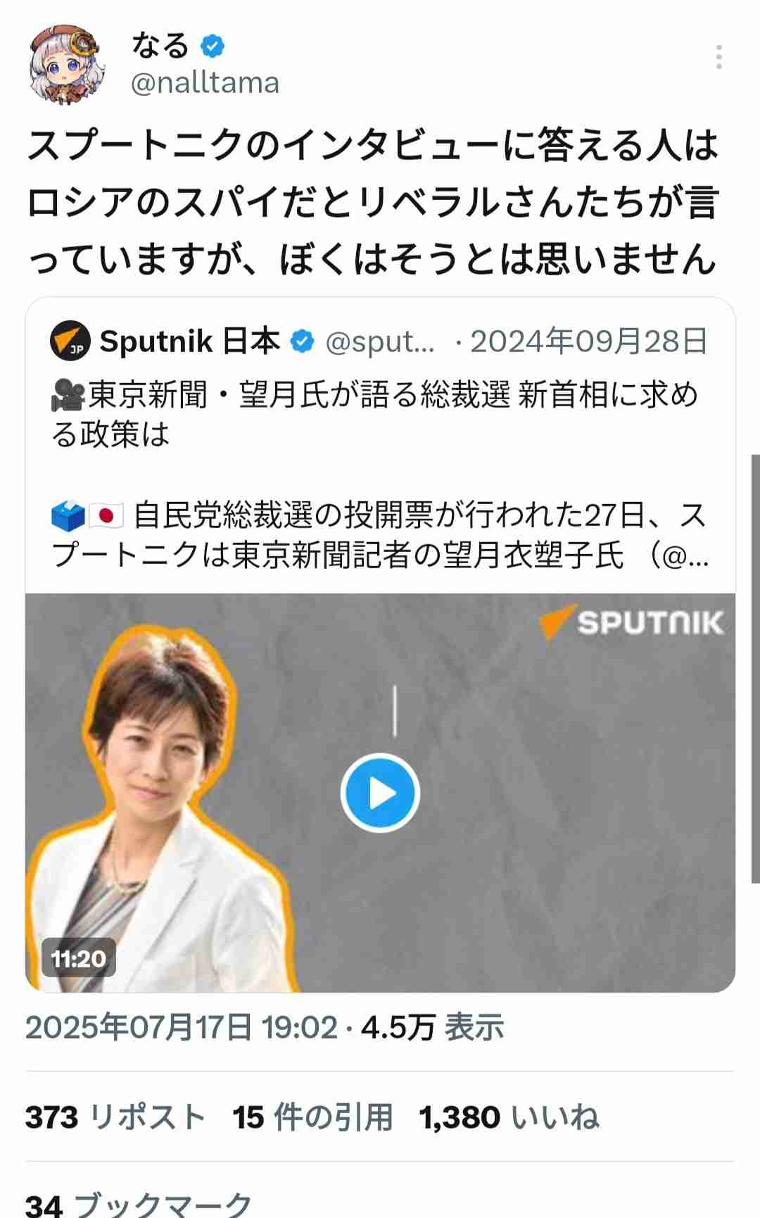 批判されてるのはスプートニクだからって短絡的な理由じゃなくて選挙の時期に立候補者として喋ってbotが大暴れして世論かき乱してるってところだろ