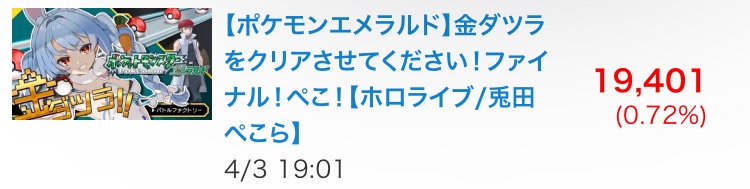 - ポケモン好きだからぺこらがダツラやるって聞いて楽しみで何回か見たけどポケモン下手すぎるんだもんぺこら