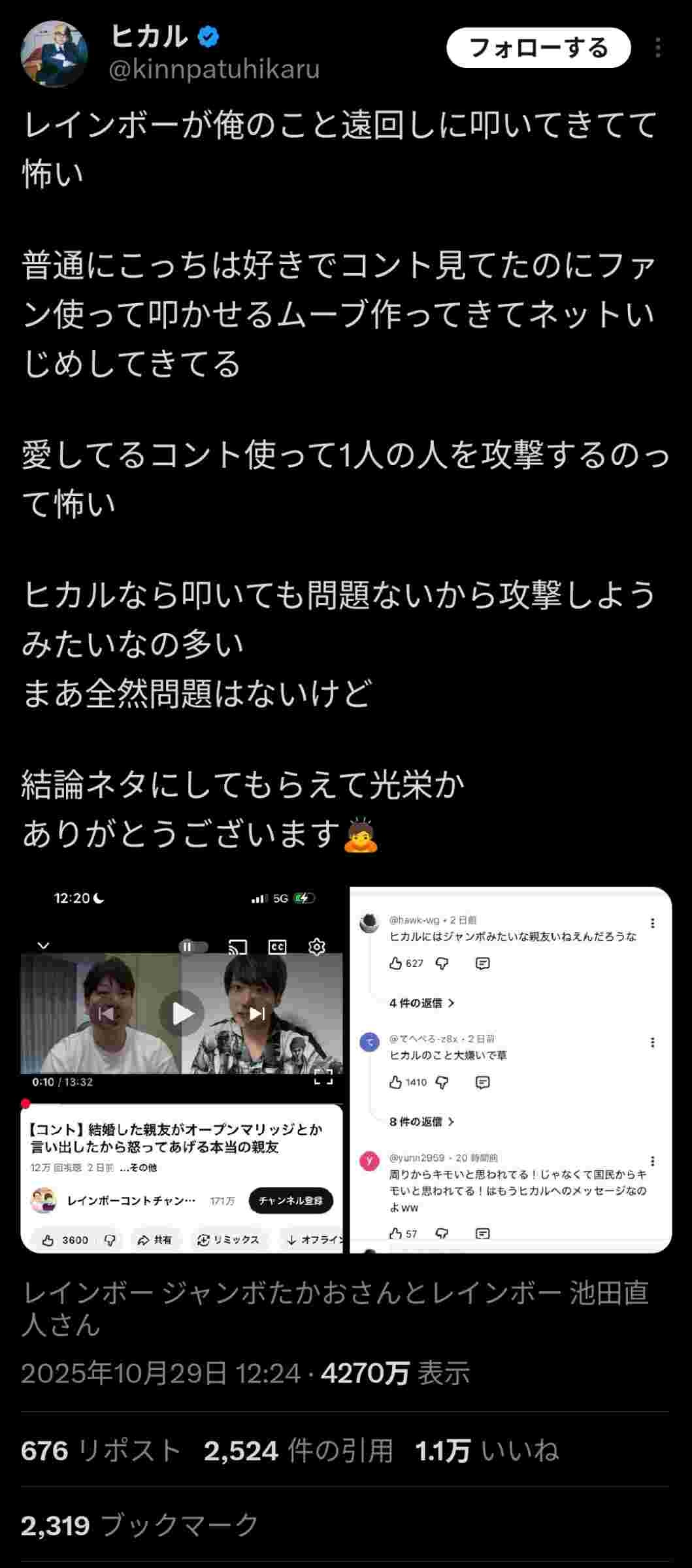 人のことだからいいけど単なる炎上商法なら悪影響だからBANにしてほしい