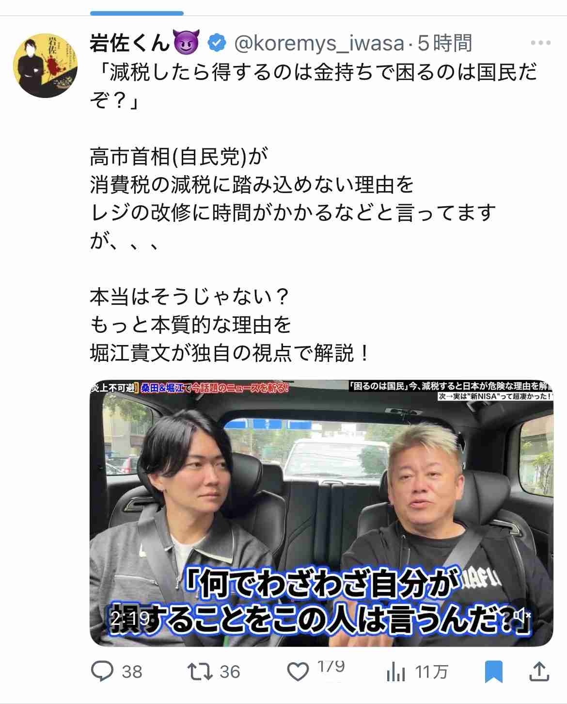 【愛国者悲報】ホリエモン「減税すると得するのは俺お前ら損するからな?減税すると消費するからインフレ加速する。減税は一番の悪手。」
