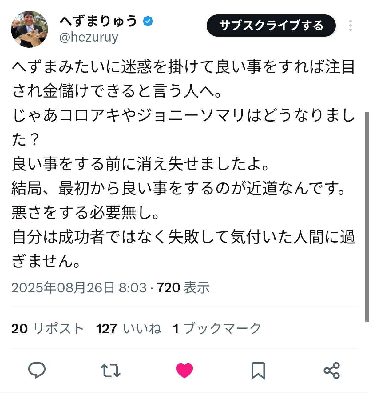 無名の真面目な人なら選ばれないからモヤモヤするのも分かる、終わり良ければ理論で最初はどんな手段使ってでも名を売るのが正しい事になる