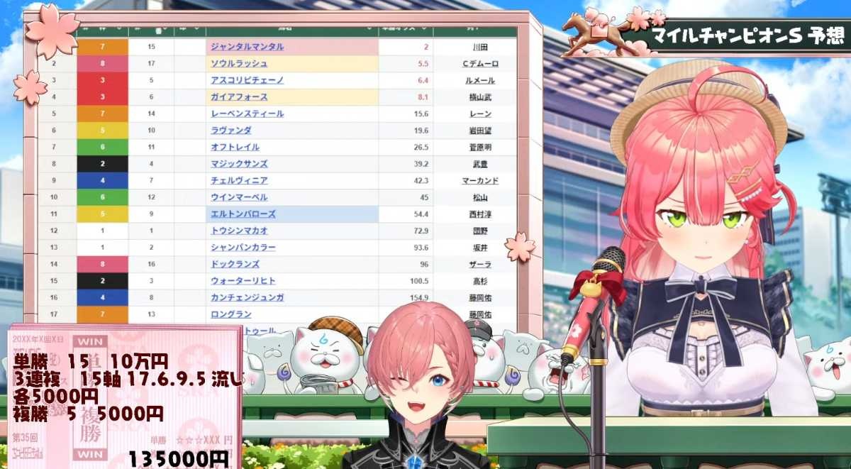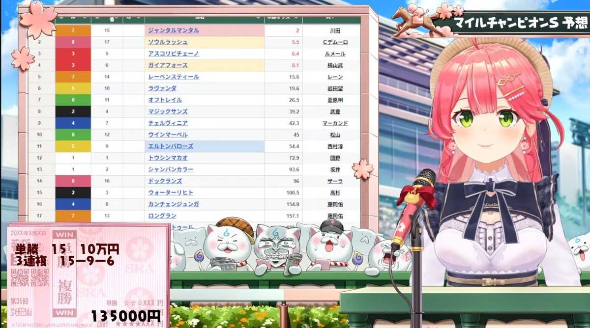 【競馬】ホロライブさくらみこ王、ジャンタルマンタル単勝に10万円