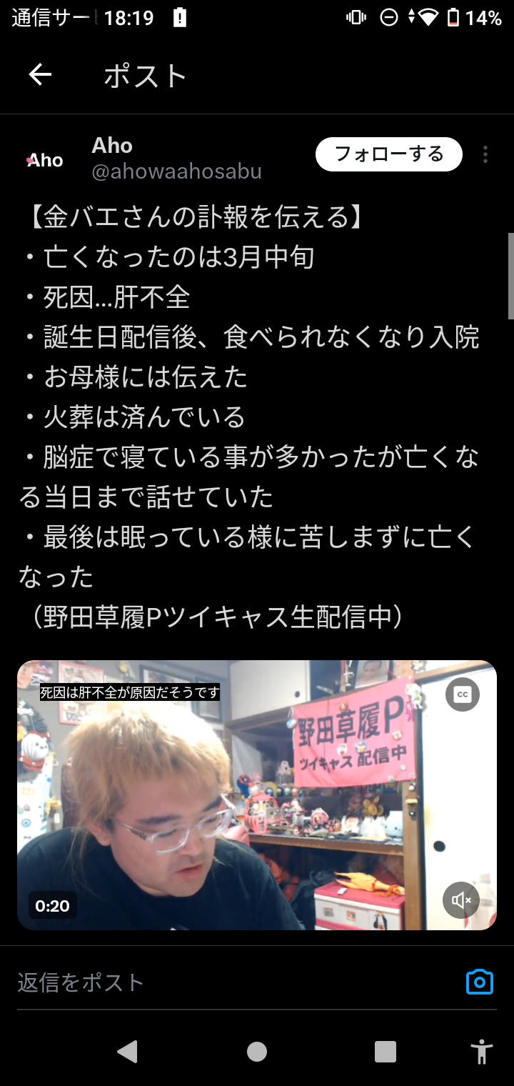 【訃報】金バエ、3月中旬に亡くなっていた