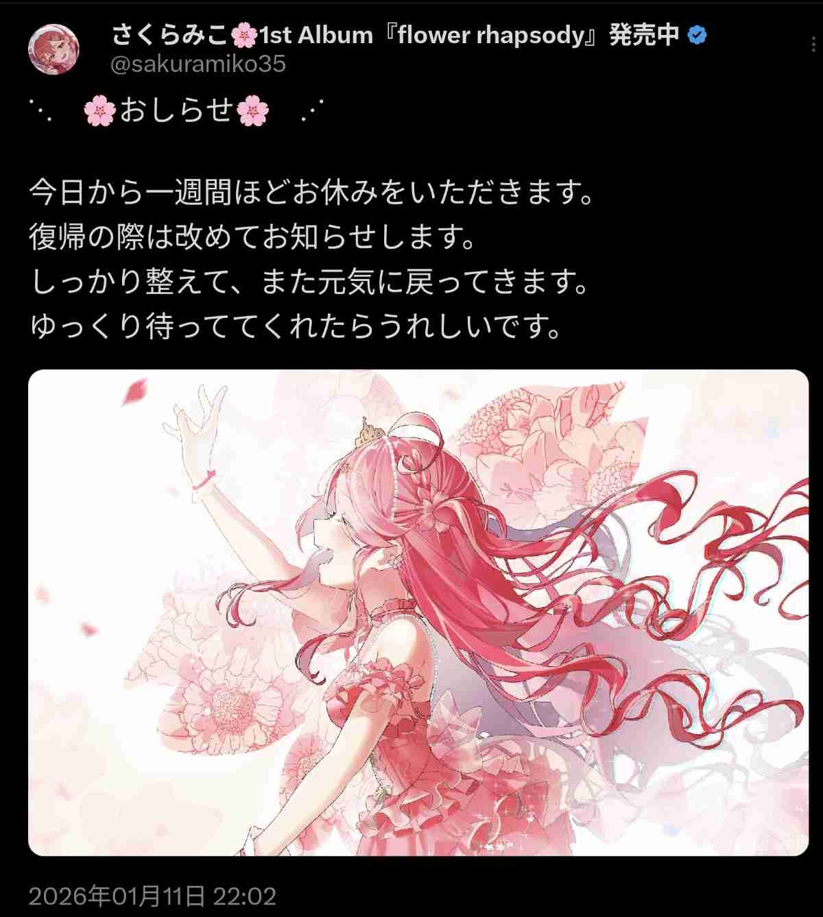 ホロライブ・さくらみこ、活動を一時休止「ゆっくり待っててくれたらうれしいです」