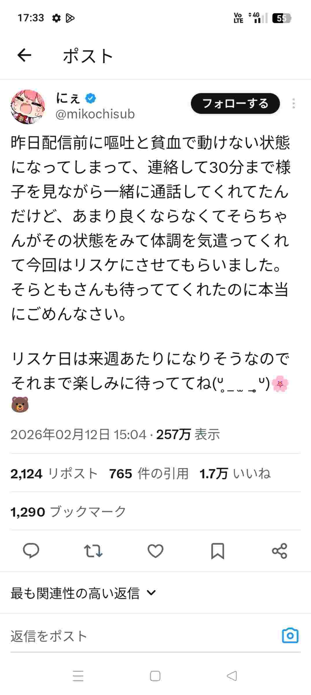 本人のリプ欄ですごい言い訳っぽいこと話してるじゃん