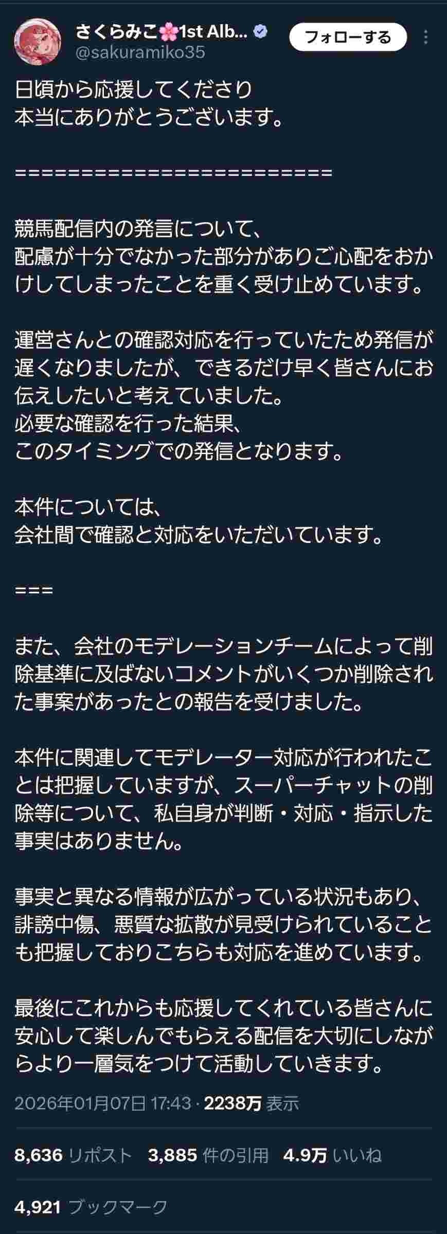 有料競馬配信の内容を無料で拡散したことへの釈明じゃないの?