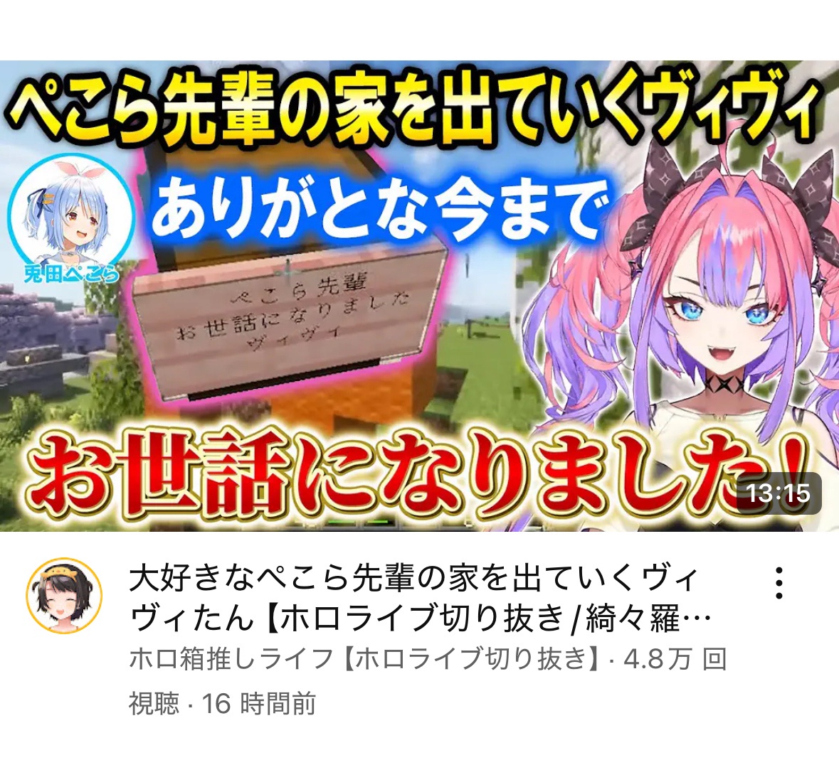 すまん、Vtuberとか見てないし嫌いなんだが、ぺこらとヴィヴィのマイクラでの絆に泣いてる。マジで切ない。これもう“物語”だろ