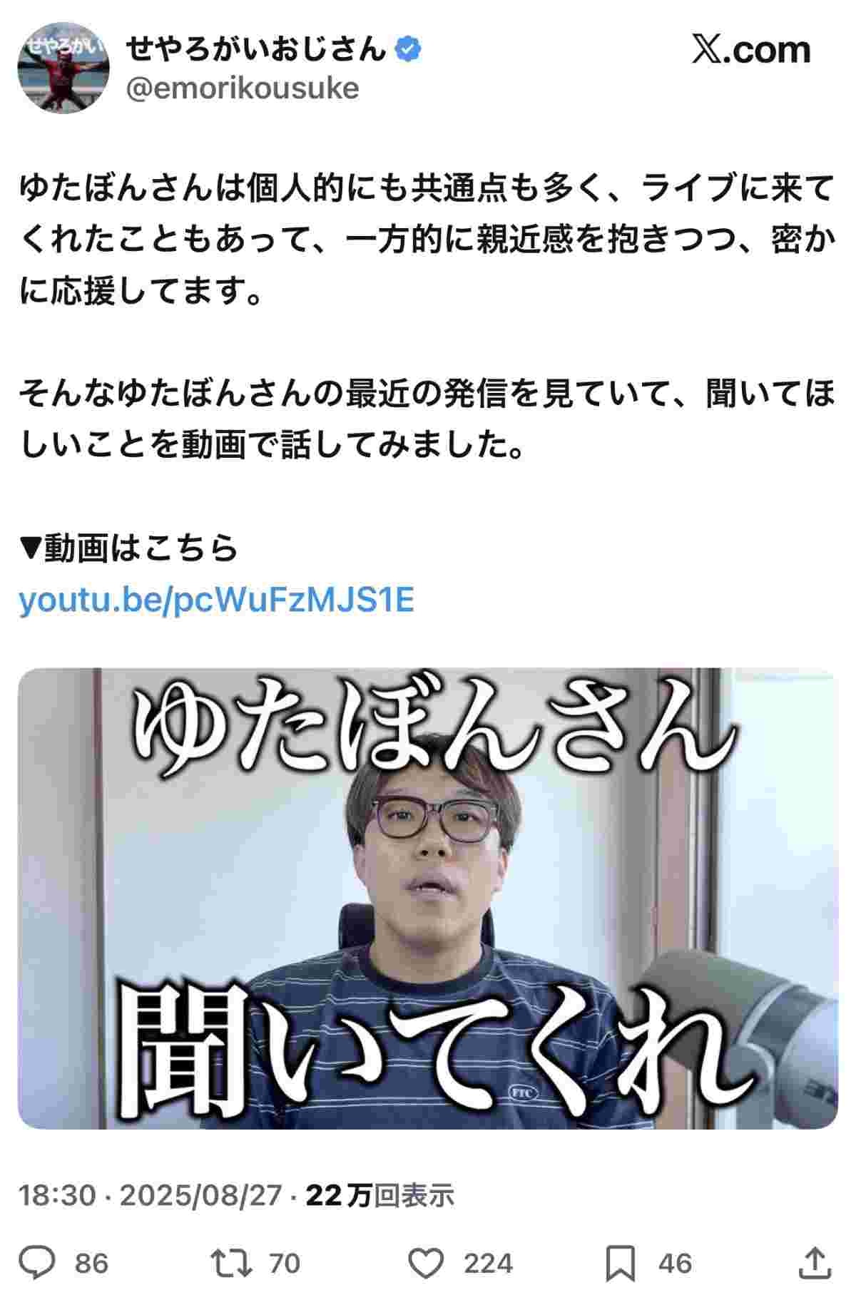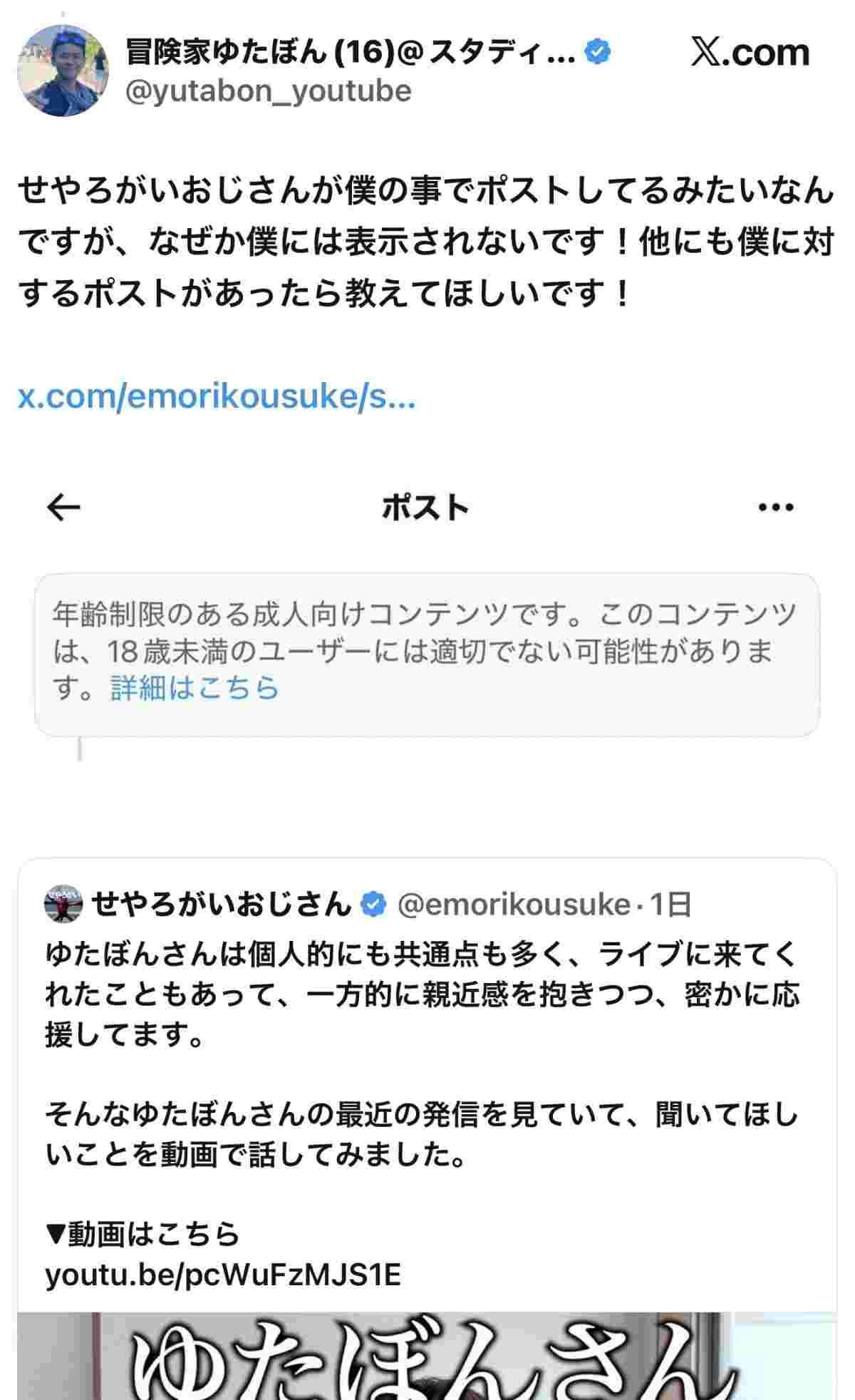 せやろがいおじさん「ゆたぼんよ聞け!」ゆたぼん「(成人向けコンテンツです)いや見れないんすけど」