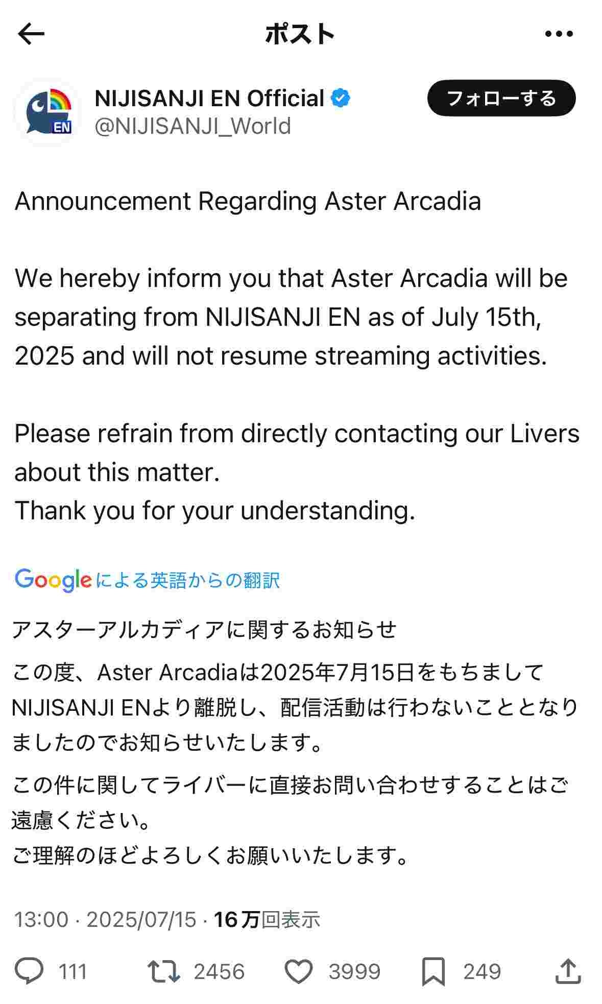 卒業でも全然騒がれないんだなENは