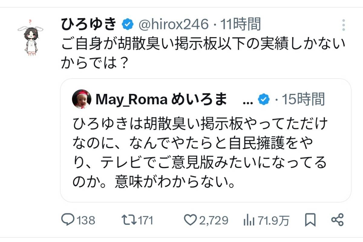 ひろゆきの話してるのに何故かめいろまの話にすり替わってる