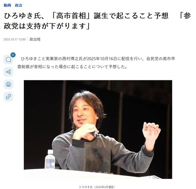 一時的に下がるが高市がブレブレになる可能性高いからそれでダメなら参政党がさらに上に行きそう