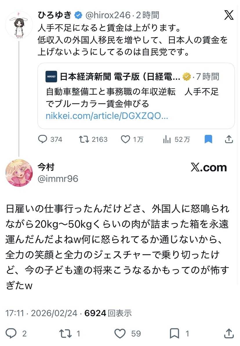 自民と経団連は外国人を入れたくて入れたくてウズウズしてるからな
