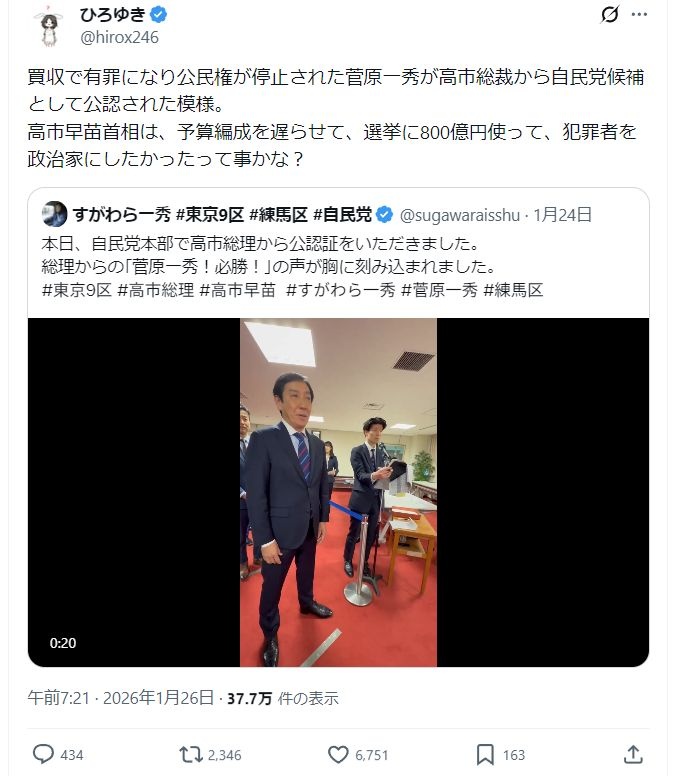 でも、ようつべのひろゆき切り抜き動画見たら、高市をベタ褒めしてることになってるぞ