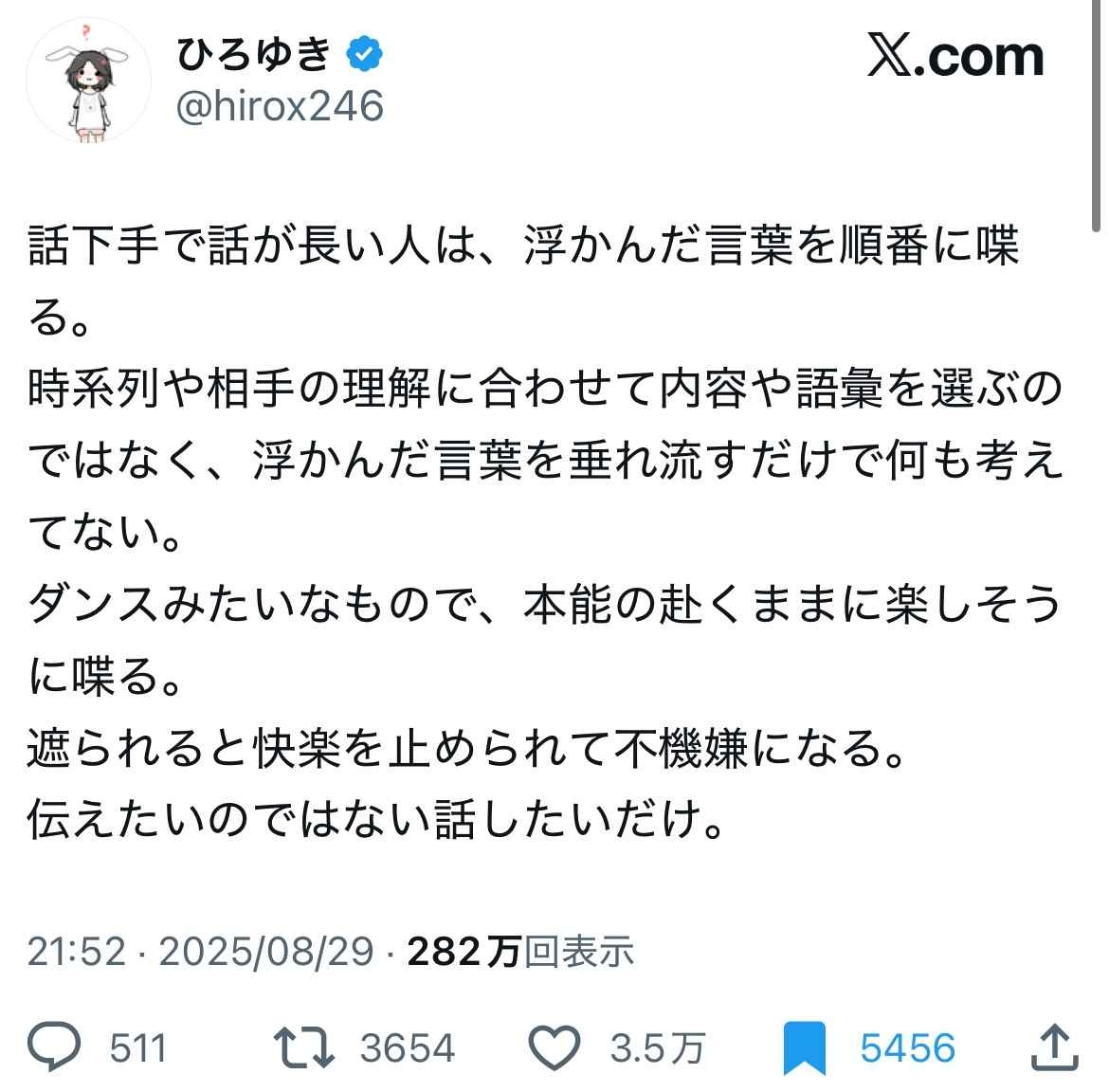 なるほど、浮かんだ言葉を垂れ流すだけで何も考えてないってのは、確かにそういう人いるよな。