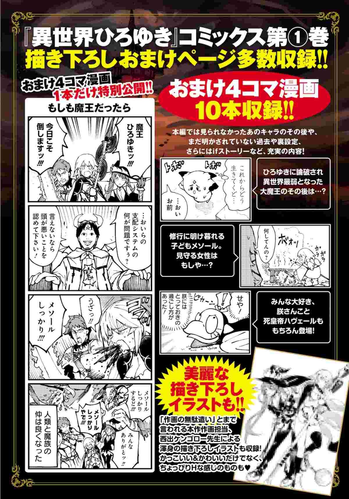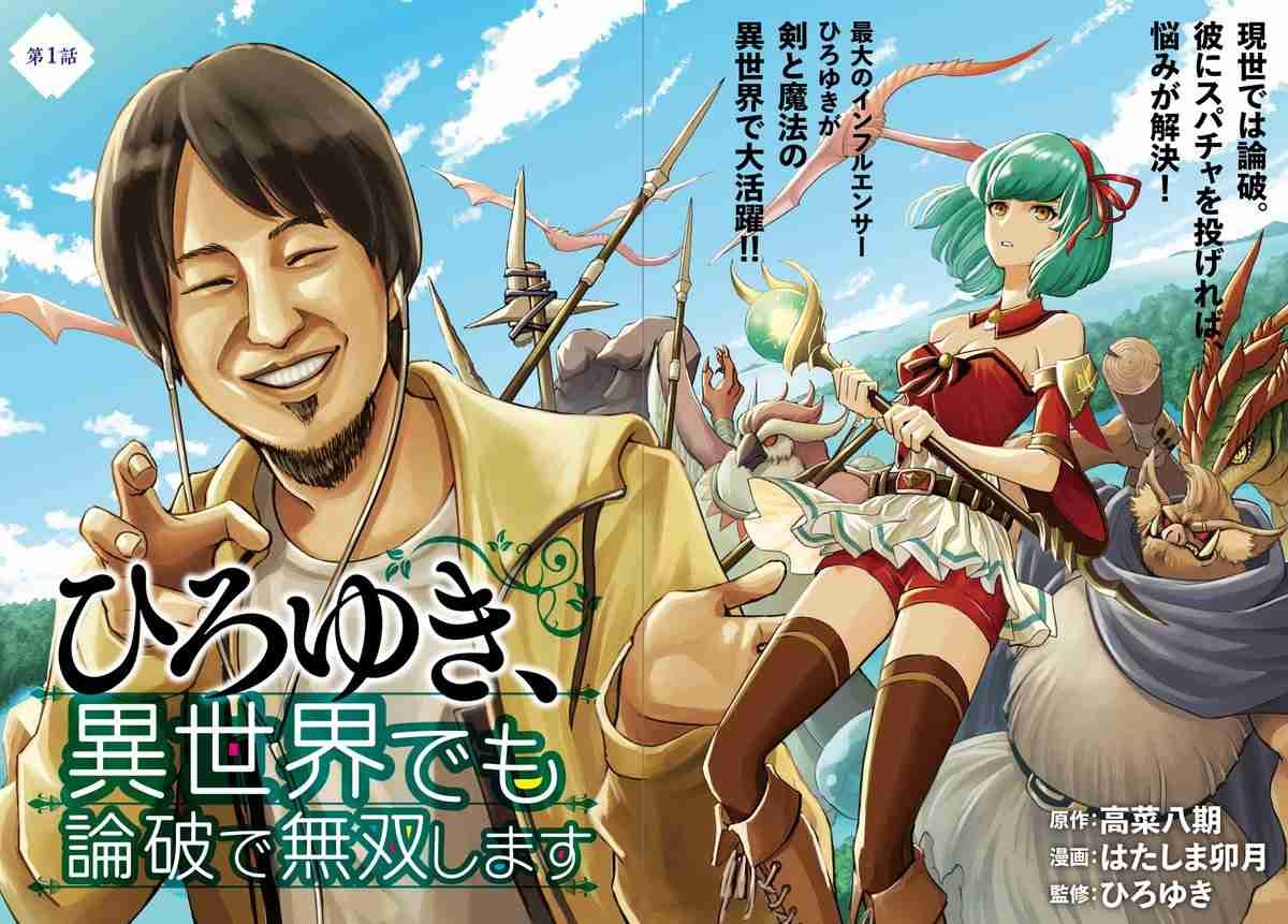 邪悪な魔族がはびこる異世界に、なぜか転移してしまったひろゆき。彼は魔法使いの少女とオークロードの戦闘に割って入ると、丸腰のまま戦いもせずにただ話し出して……。相手が人間であろうが魔族であろうが、現世と変わらずマイペースで生きていくひろゆきが、剣と魔法の世界でも“論破”を続ける姿を描く。コミックアルナ(KADOKAWA)で連載中だ。購入特典として未来屋書店、とらのあな、メロンブックス、ゲーマーズ、アニメイトではイラストカードを配布している。