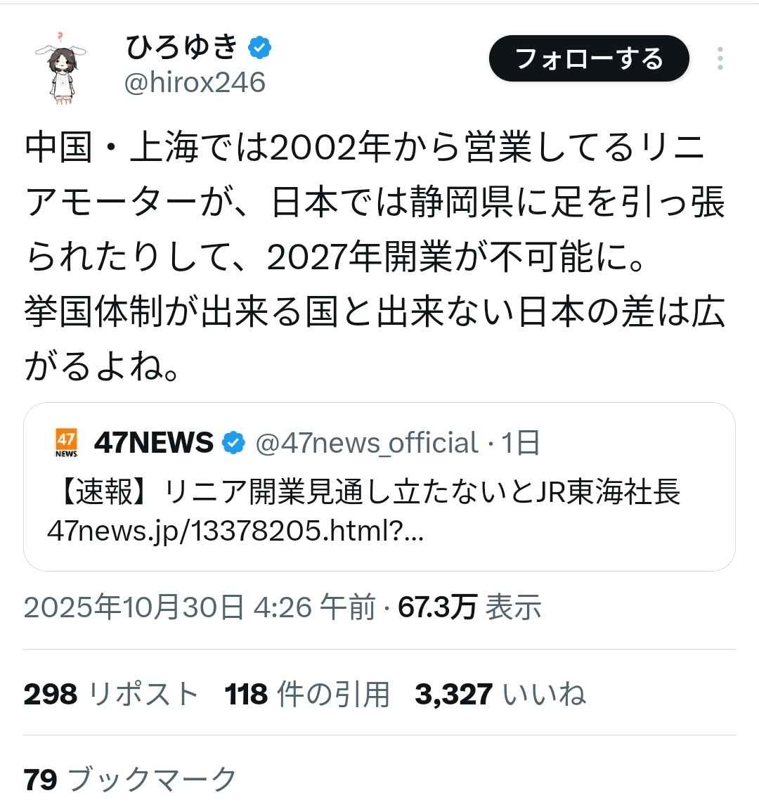 ひろゆき氏「中国では既にあるリニア、日本は静岡に足引っ張られて27年開業が不可能に」