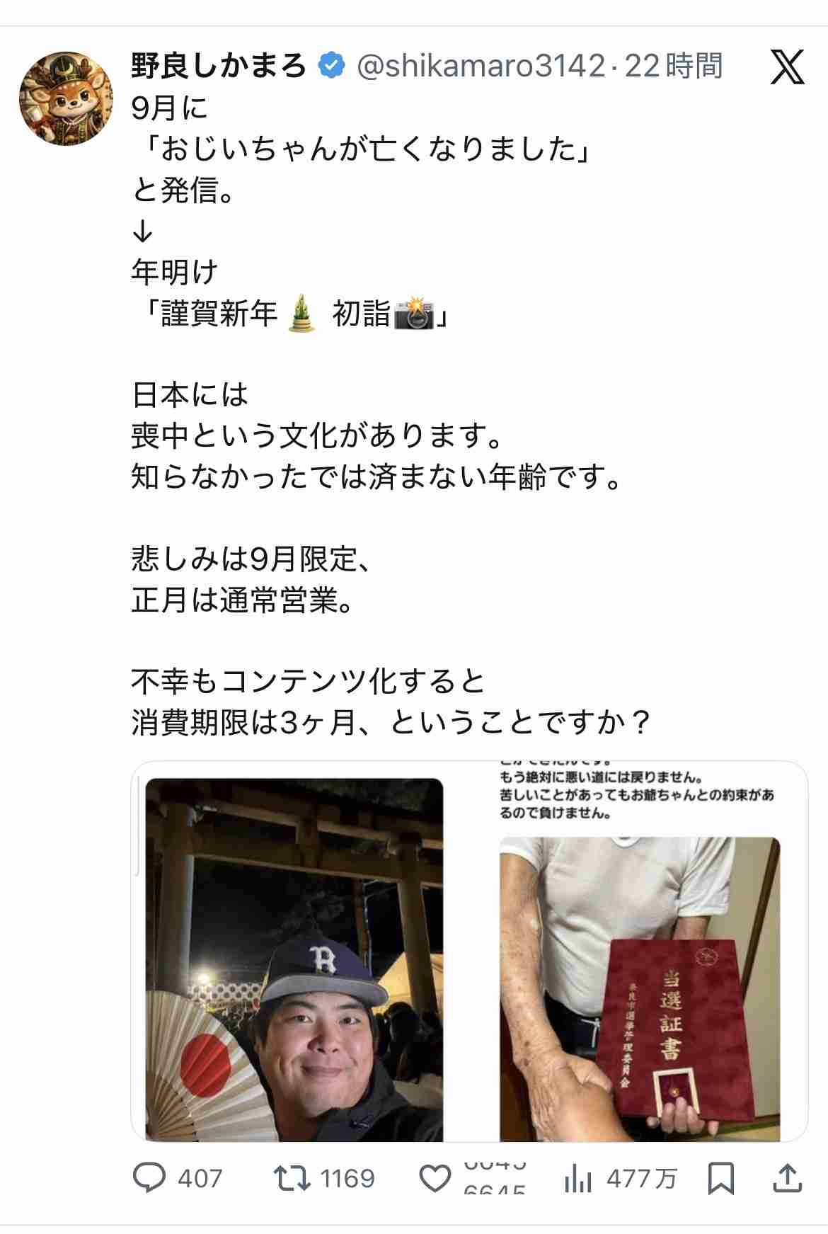 喪中だから新年を祝うな、なんて言う方がおかしいだろ