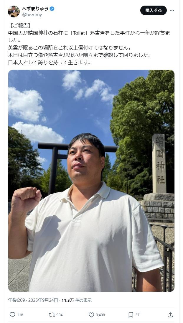 迷惑系やってる頃から靖国参拝してたのかコイツ