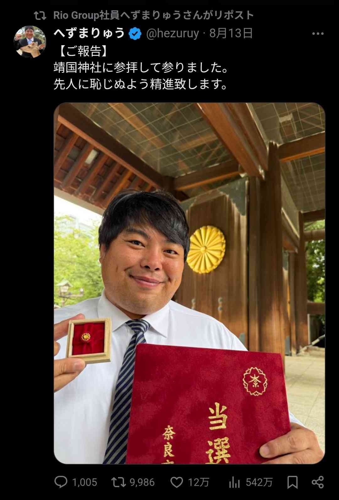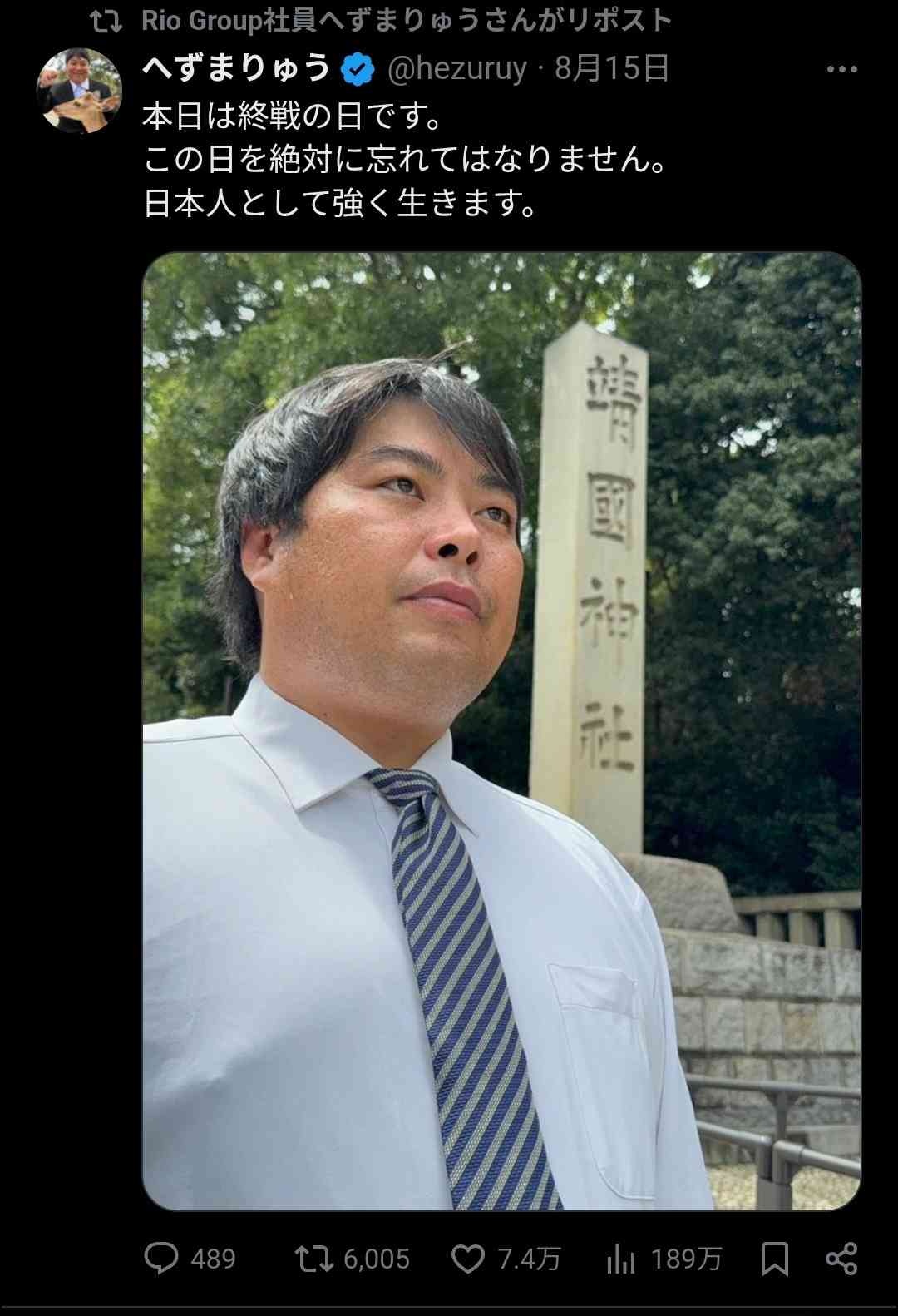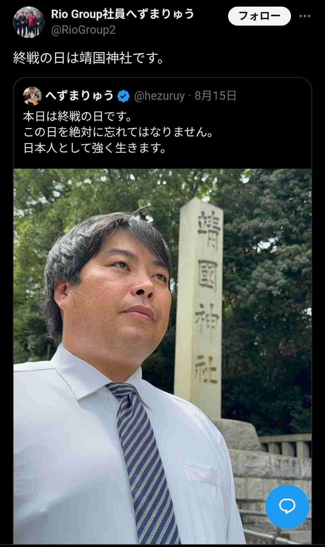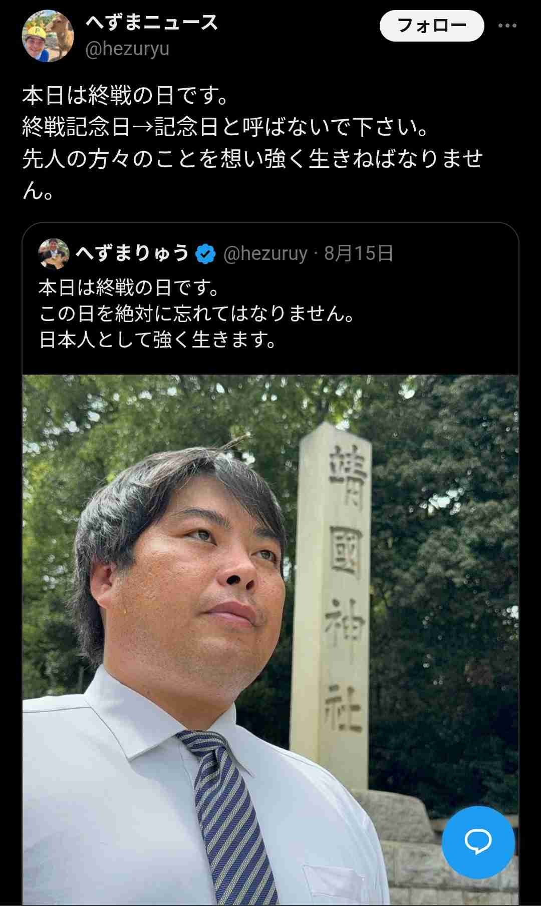 へずまりゅう氏、靖国神社参拝「先人に恥じぬよう」フォロワーからは「立派になった」など応援の声