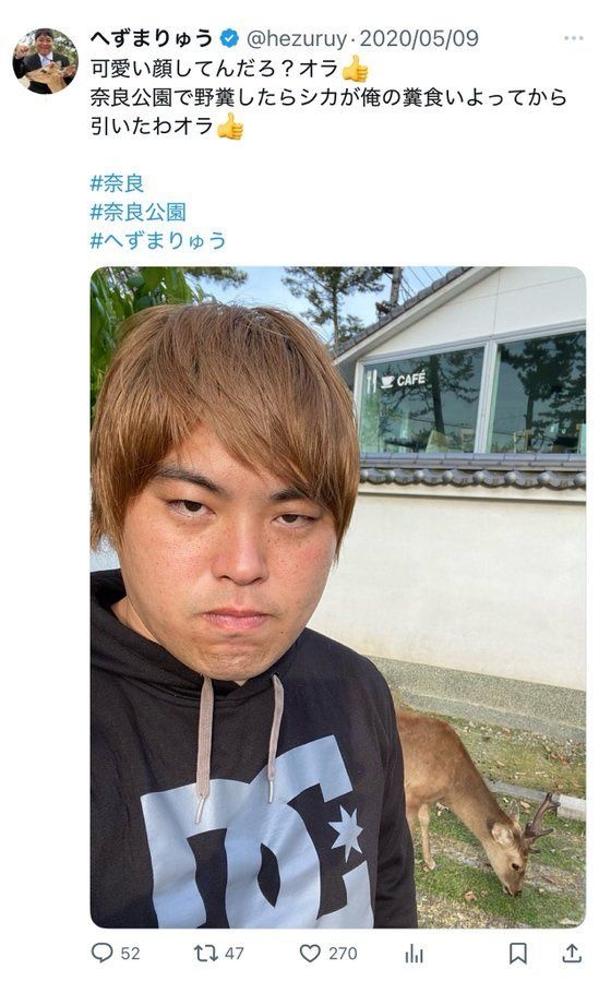 奈良の鹿にメントスコーラ突撃して鹿をビビらせるへずまりゅう