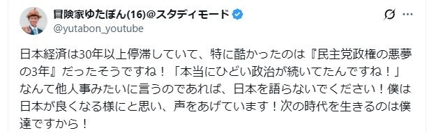 俺も高校くらいのときウヨ思想にハマってたから、こいつも早く卒業できると良いな