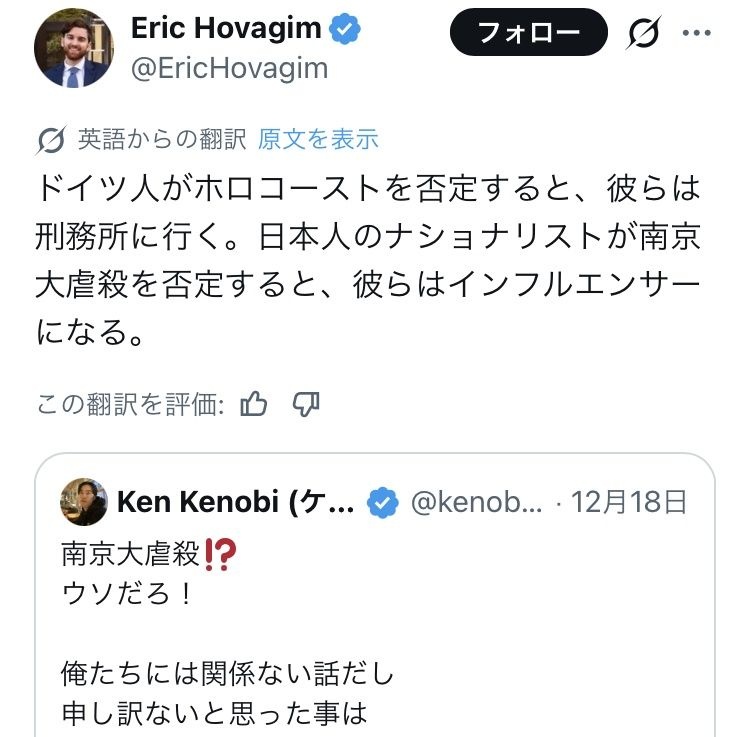 日本じゃあんまり意識しないけどヨーロッパの殆どの国でホロコースト否定は違法なんだよな