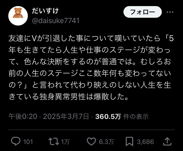 - 推し関係の◯◯引退が悲しいって話にこの回答するやつは友達いないだろ…