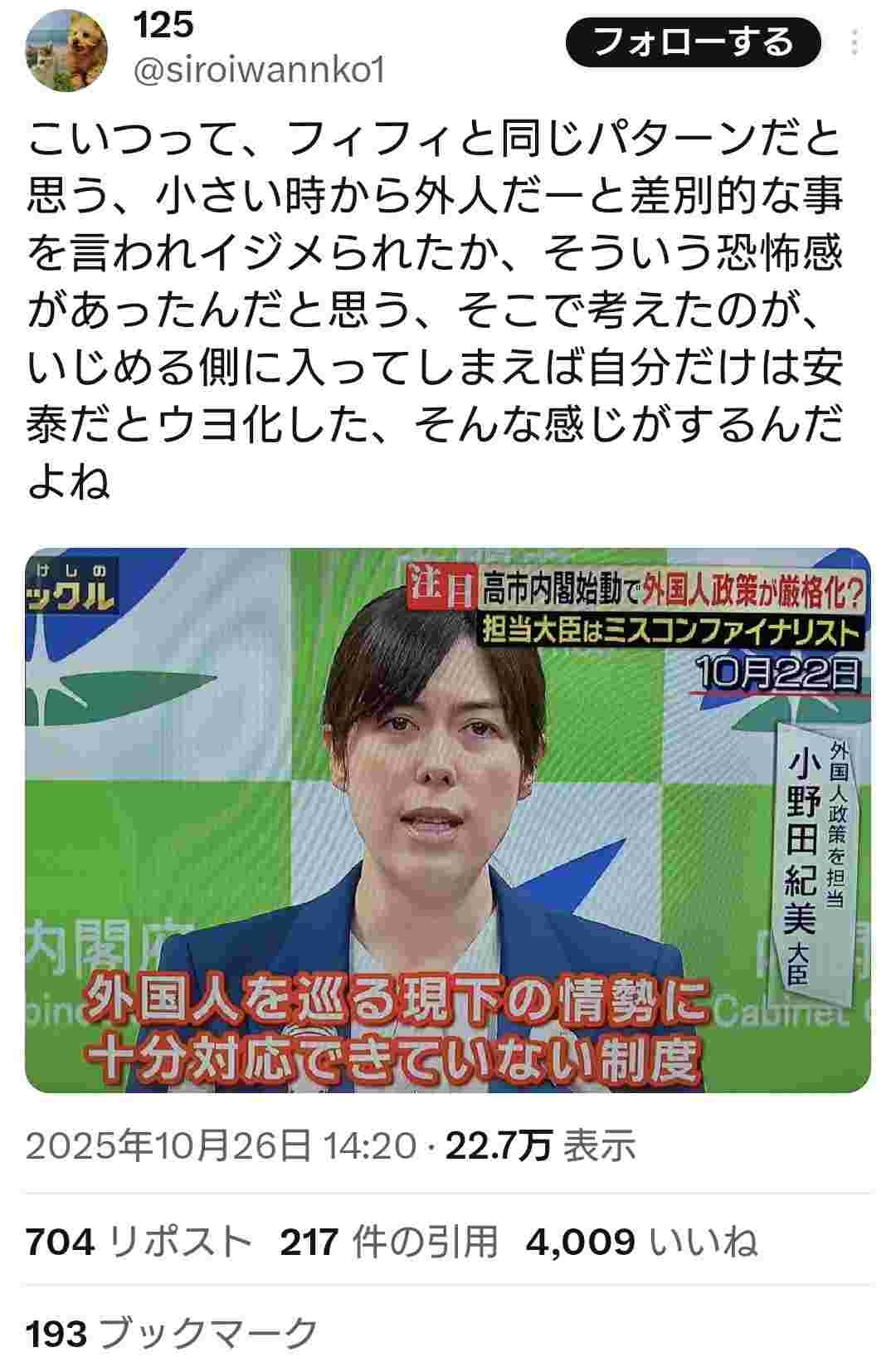 パさん「こいつ(小野寺氏)ってフィフィと同じパターンだと思う。小さい時から外人だとイジメられたか」