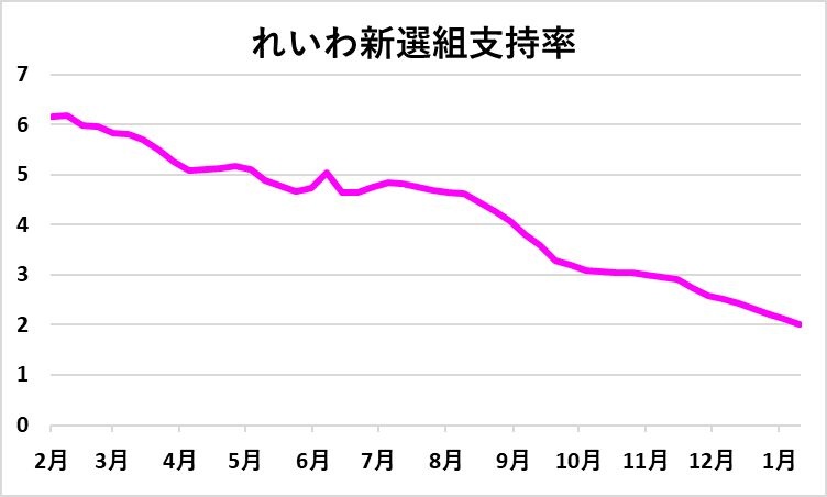 山本太郎が辞める前からだいぶ支持率下げてた。