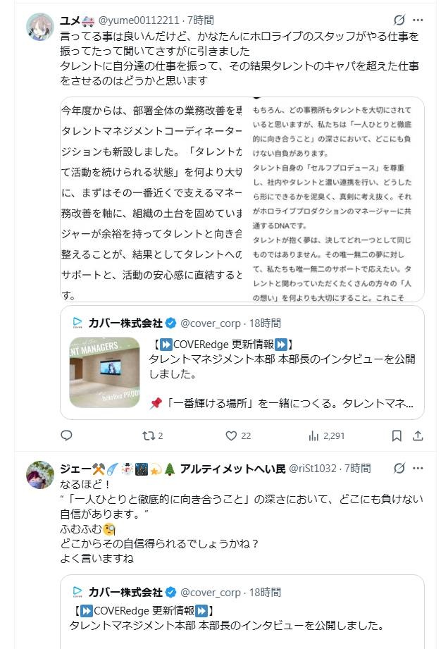 https://coveredge.cover-corp.com/list/4030なかなか知られていない、ホロライブプロダクションのタレントマネージャーの業務内容や、目指すビジョンを伺いました。