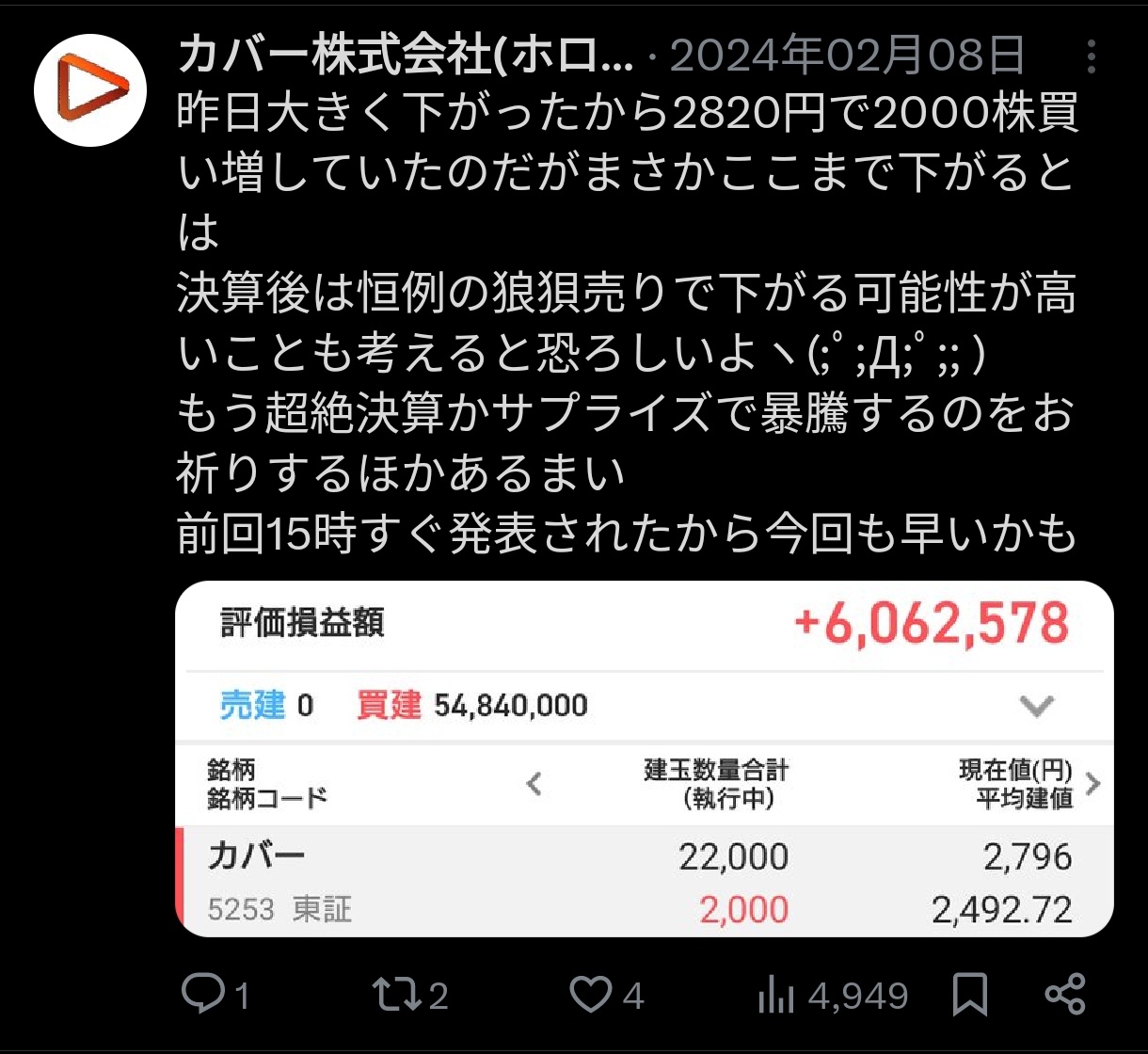 - 含み益ふっとんでツイートできる精神力はすごい