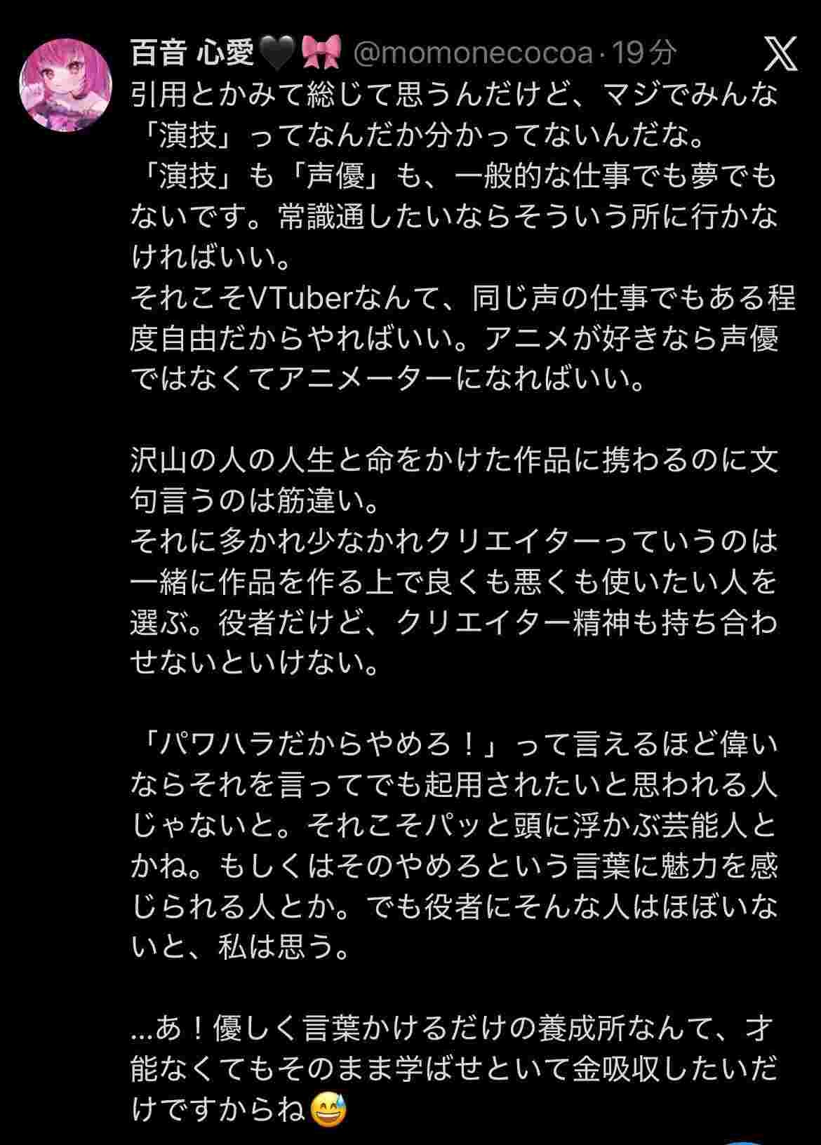 昔は俳優崩れの声優がパワハラしてたのが今では声優崩れのvtuberがパワハラしてるってことやね🤗