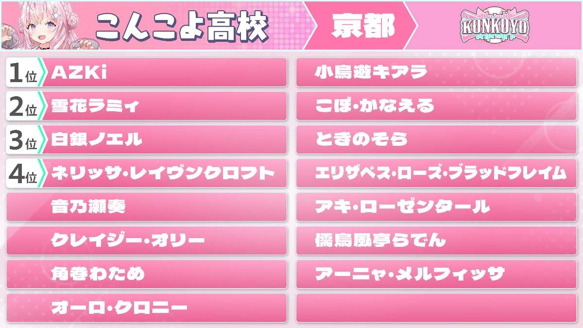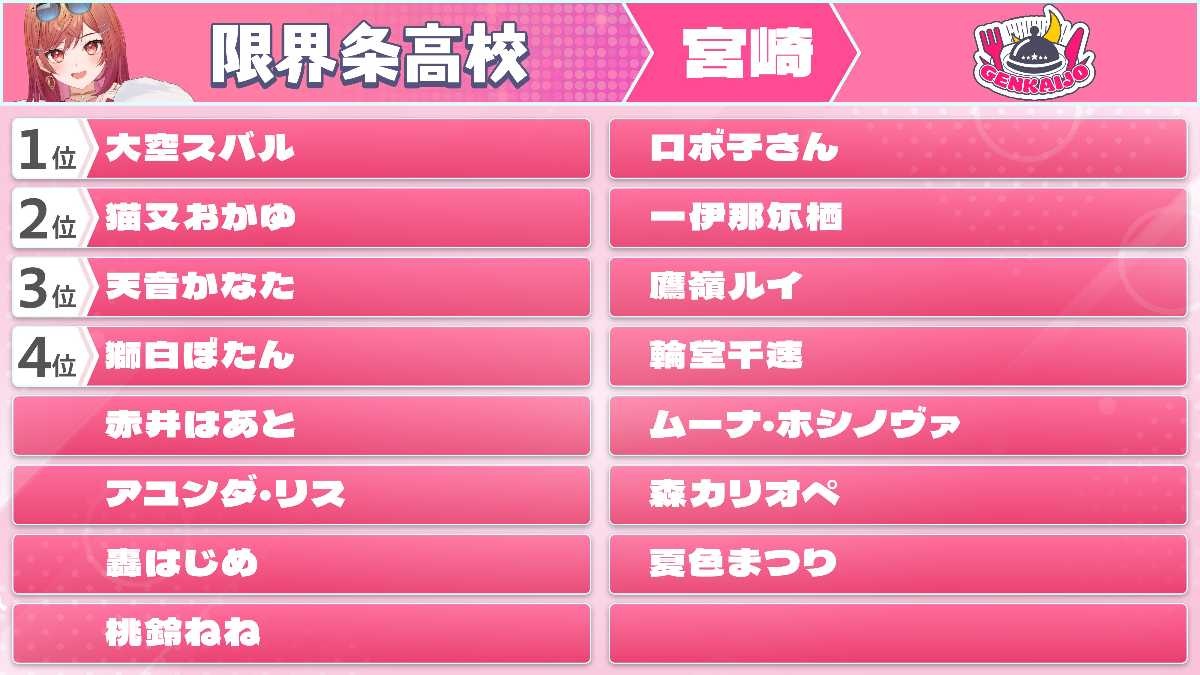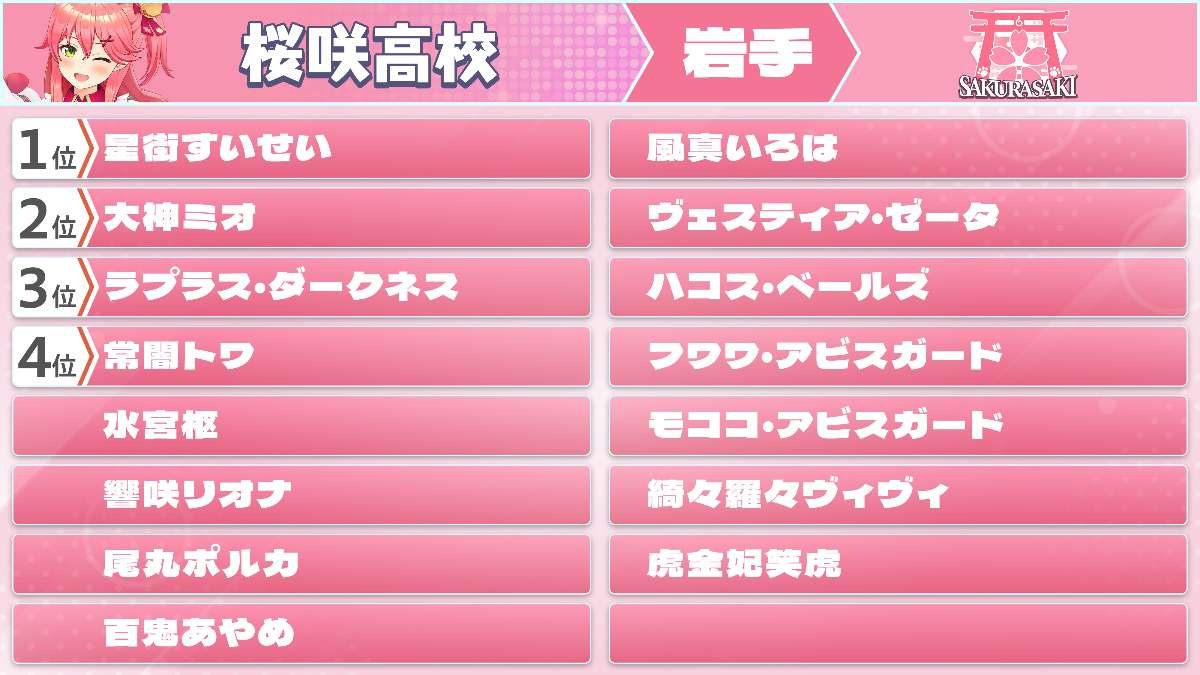 1位になった高校と(ただし、みこの高校除く)