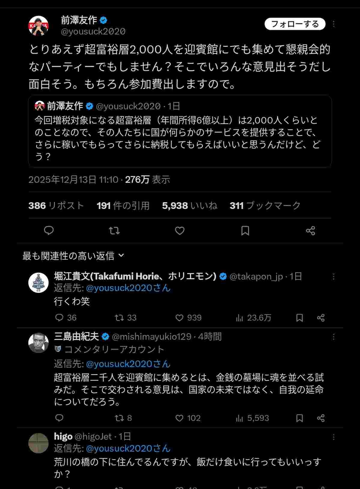 2000人の中に前澤、堀江、CIS、三木谷は決まりか。