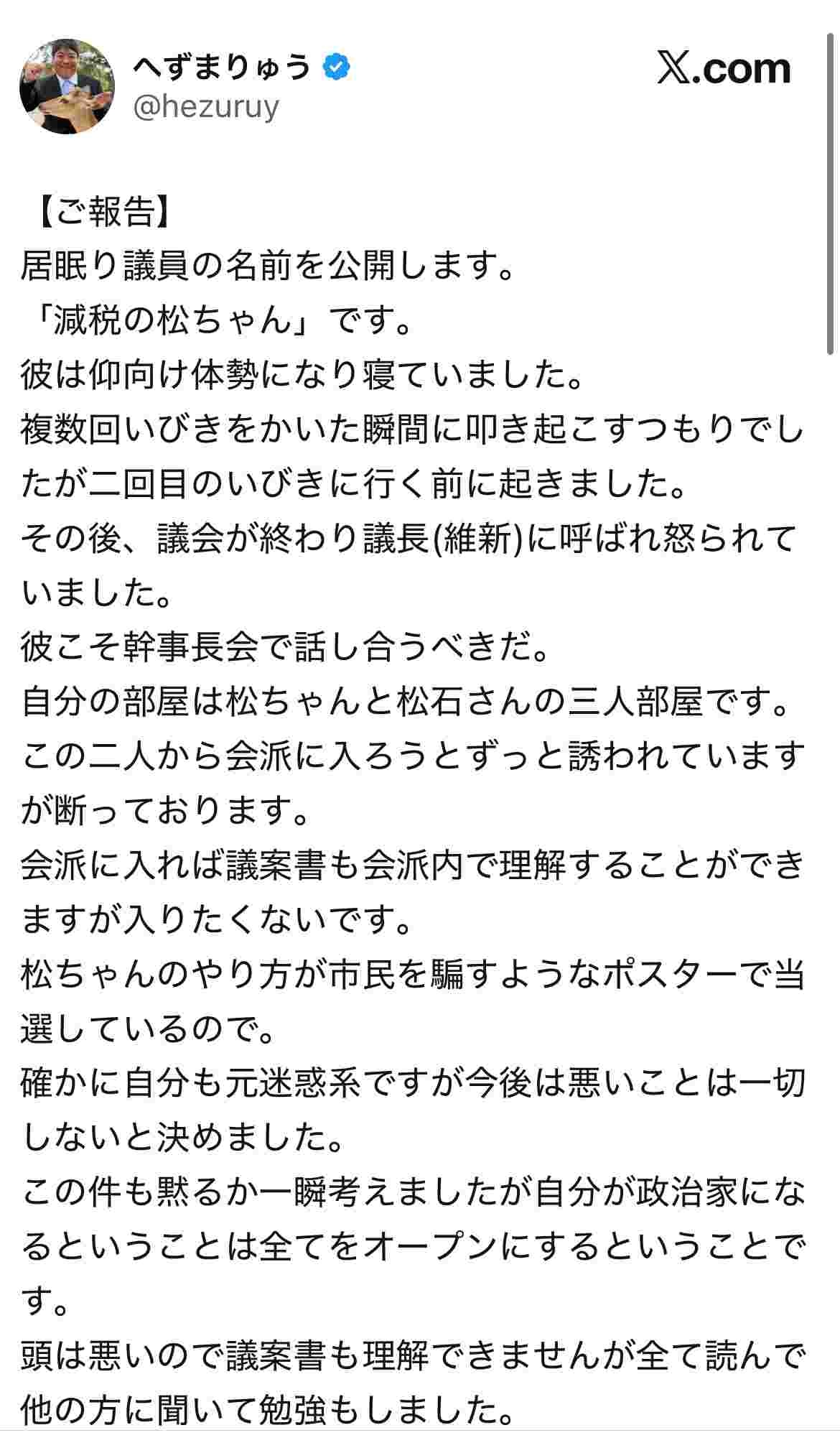 国士へずまりゅう、居眠り議員第一弾を晒すwww