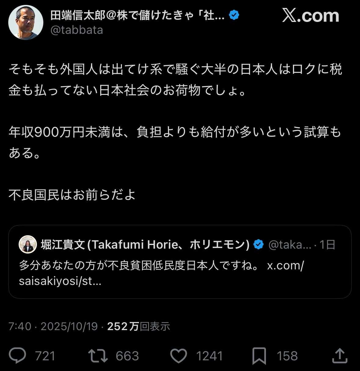 堀江貴文「年収900万円以下のお荷物は不良外国人をとやかくいう資格ない」