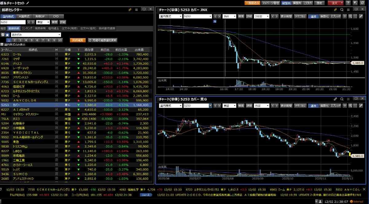 1500円くらいの株が100円動くってデカい動きやし