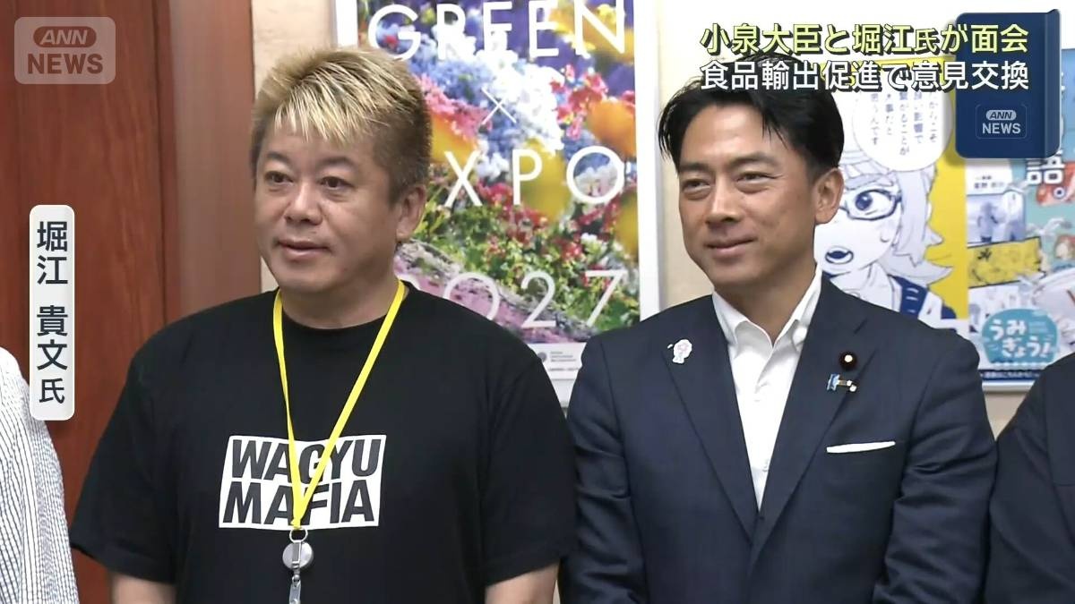 小泉農林水産大臣は、実業家の堀江貴文さんと面会し、日本の農林水産物や食品の海外輸出促進に向けて意見交換を行いました。