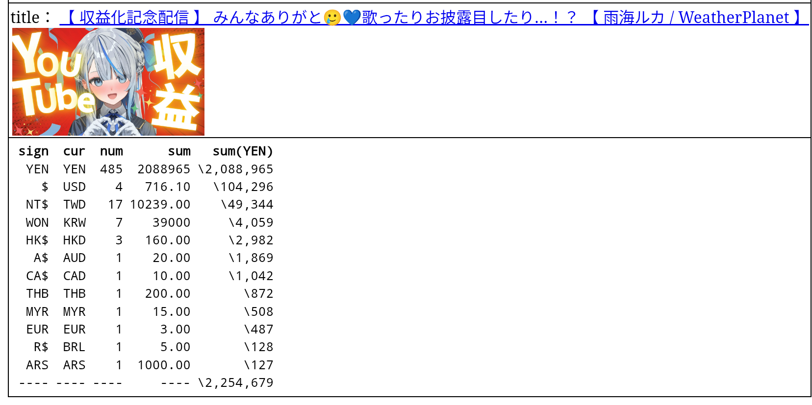 新人Vtuber雨海(あまがい)ルカさん、収益化記念配信の開始前にスパチャを200万集める