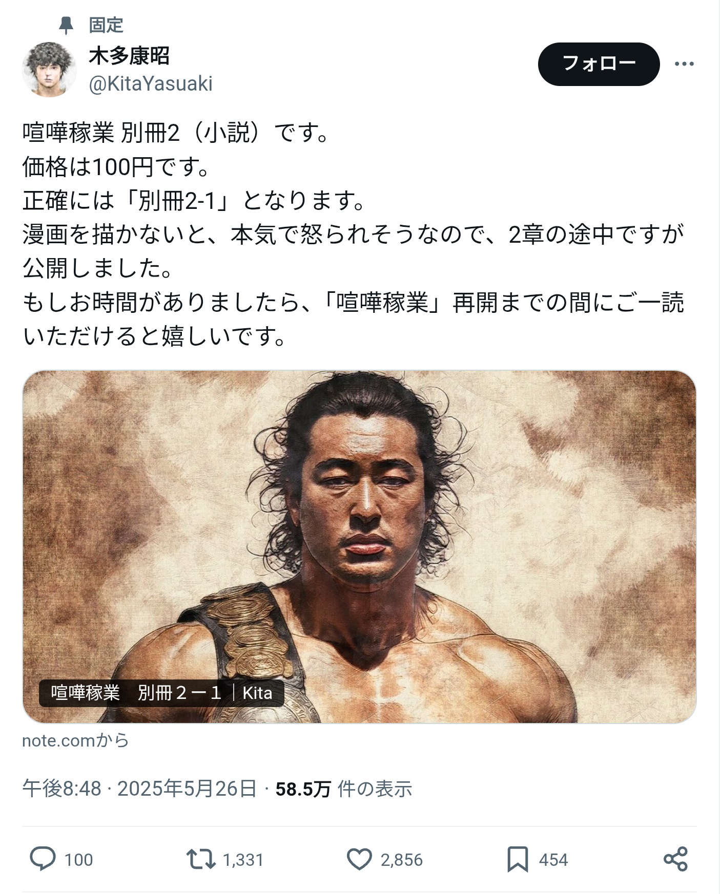 暇アノン木多、とつぜん15万字に及ぶ『喧嘩稼業』の小説を投稿!&漫画再開を名言! 読者「木多康昭はここからが長い」