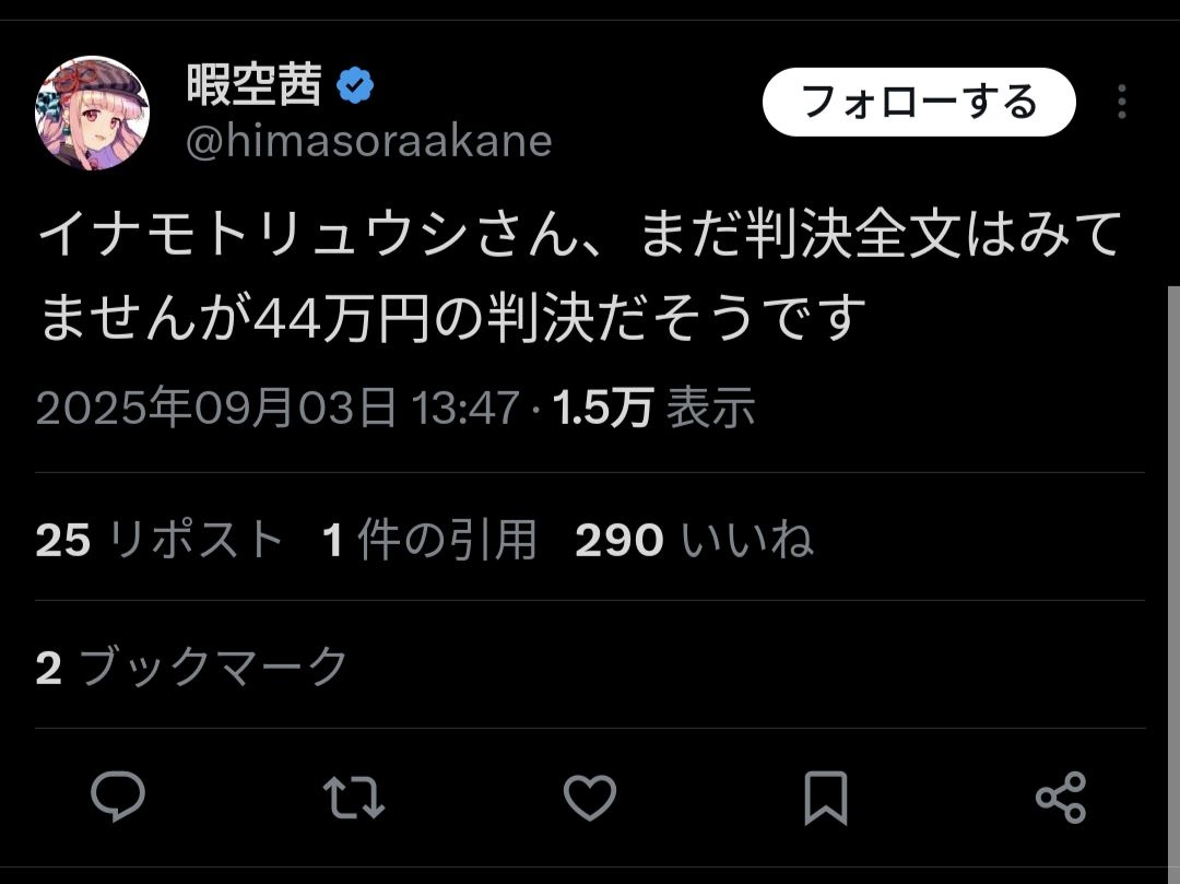 うーんこれは暇さんの社会的評価を低下させる意見論評とみなされたってことですかね?