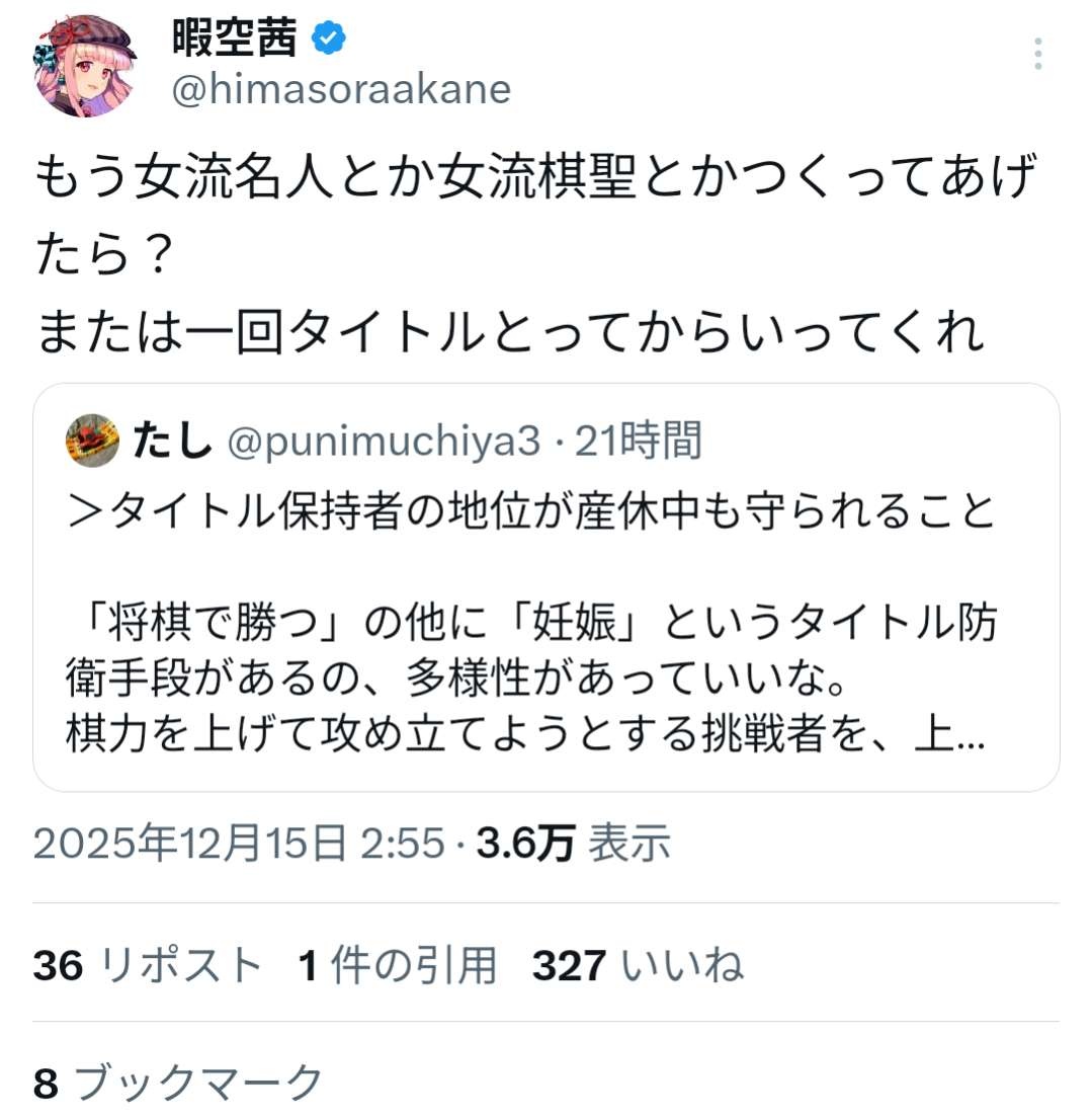 女流タイトルの話で女流タイトル作ればいいっていってるよね???