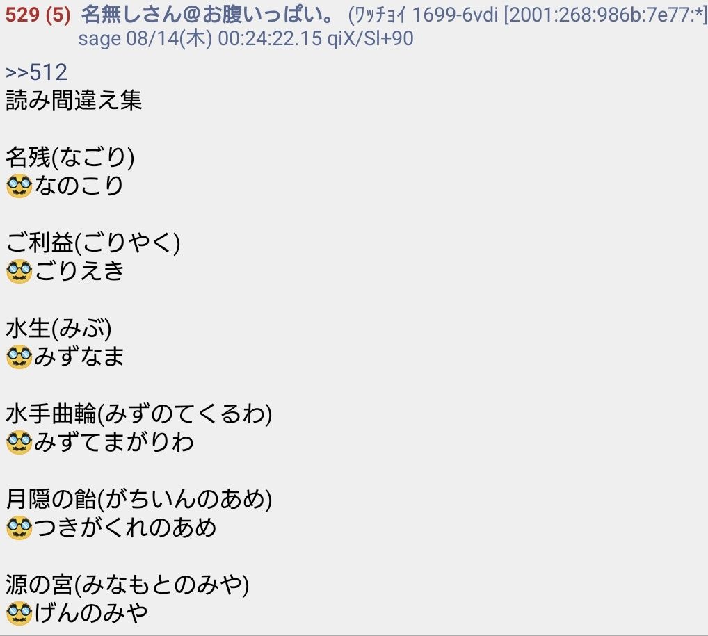名残、ご利益、曲輪、源の宮が読めないのはヤバイ