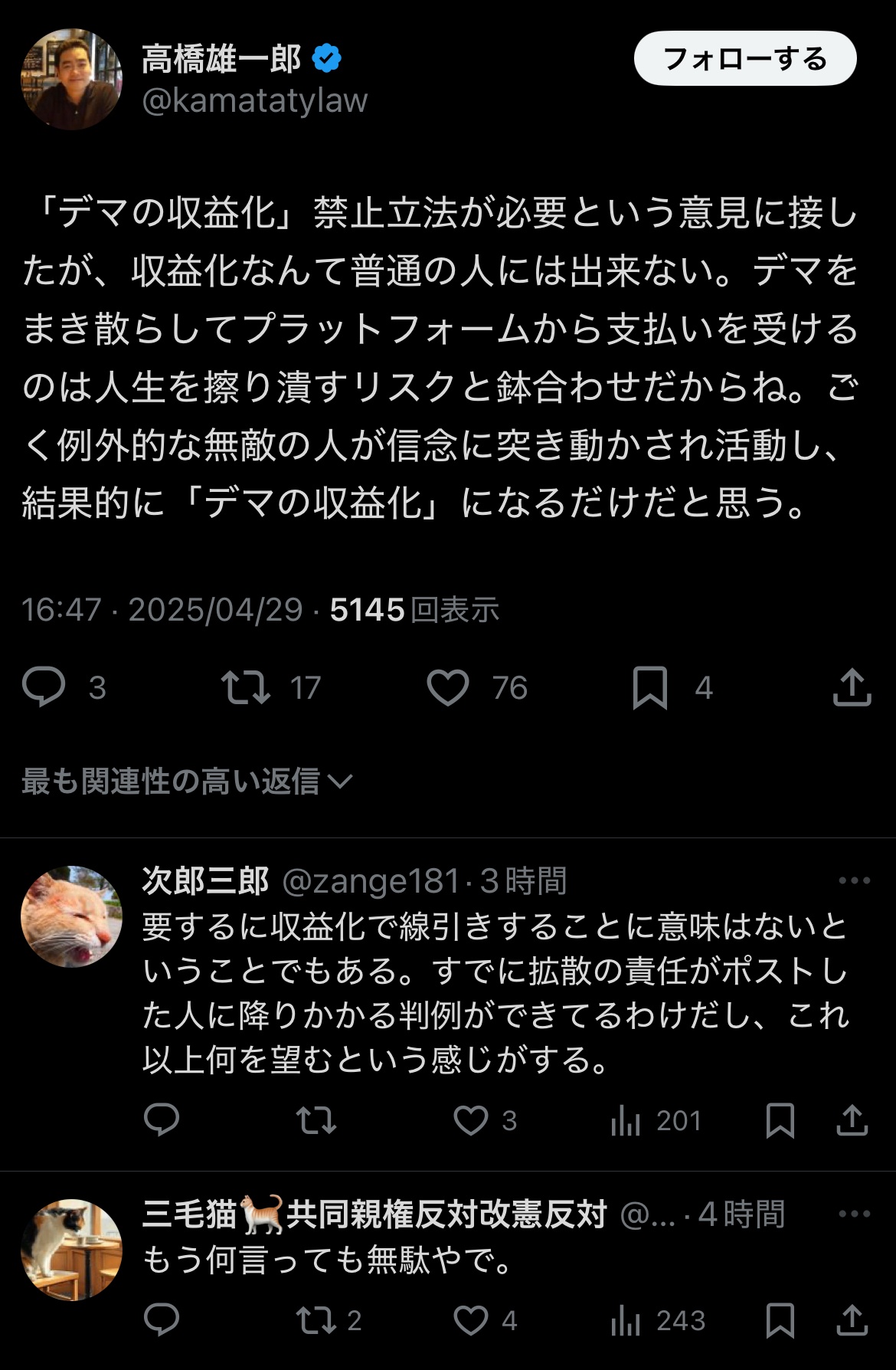 - デマの収益化の禁止法を作るべきでない、というだけでこの文字数