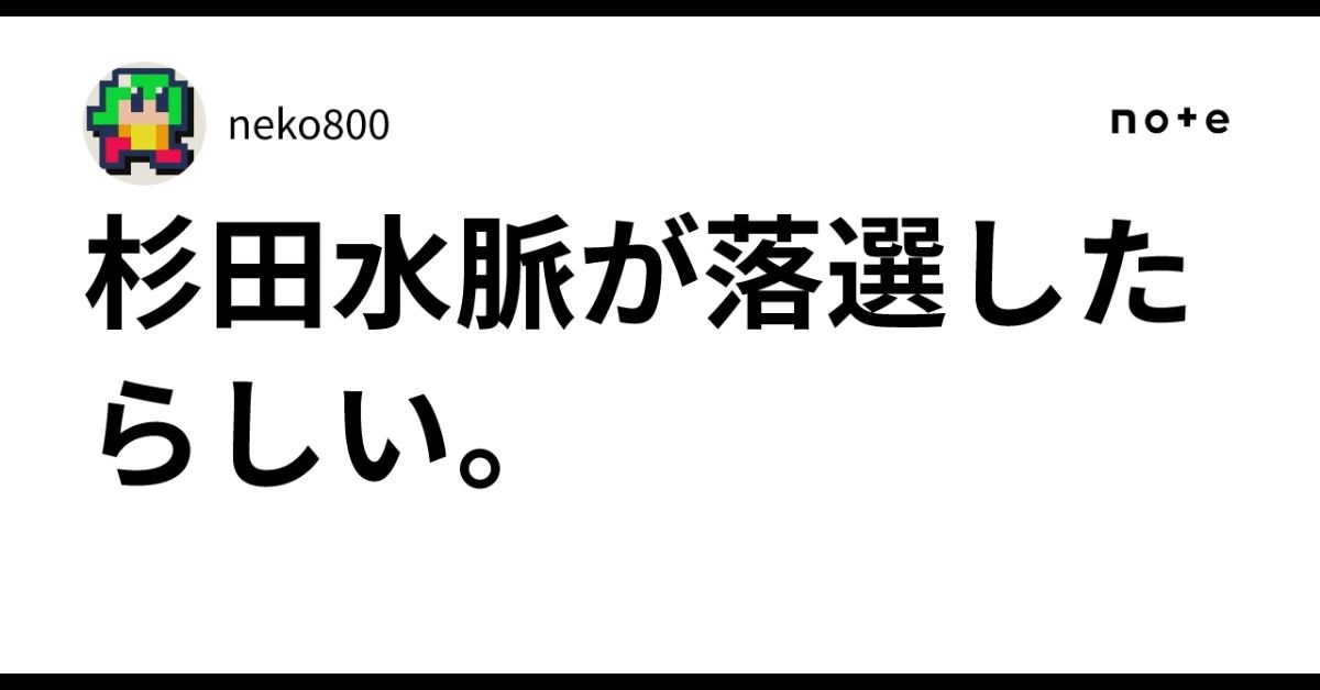 杉田水脈が落選したらしい。|neko800参議院選挙の開票速報を、特別な感慨もなく眺めていた。杉田水脈氏の落選確実の一報に、胸がすくような思いはなかった。ただ、深く、静かな溜息が出ただけだ。それは安堵とも諦めとも違う、巨大な機械が然るべき音を立てて停止したのを確認した時のような、不思議な静けさを伴う感情だった。数週間前、私は彼女の事務所に一本の電話を入れ、苦情...note.com
