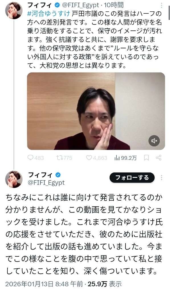 フィフィって迷惑外国人がいるから真面目な外国人が同じように見られて迷惑って言ってるだけだぞ?