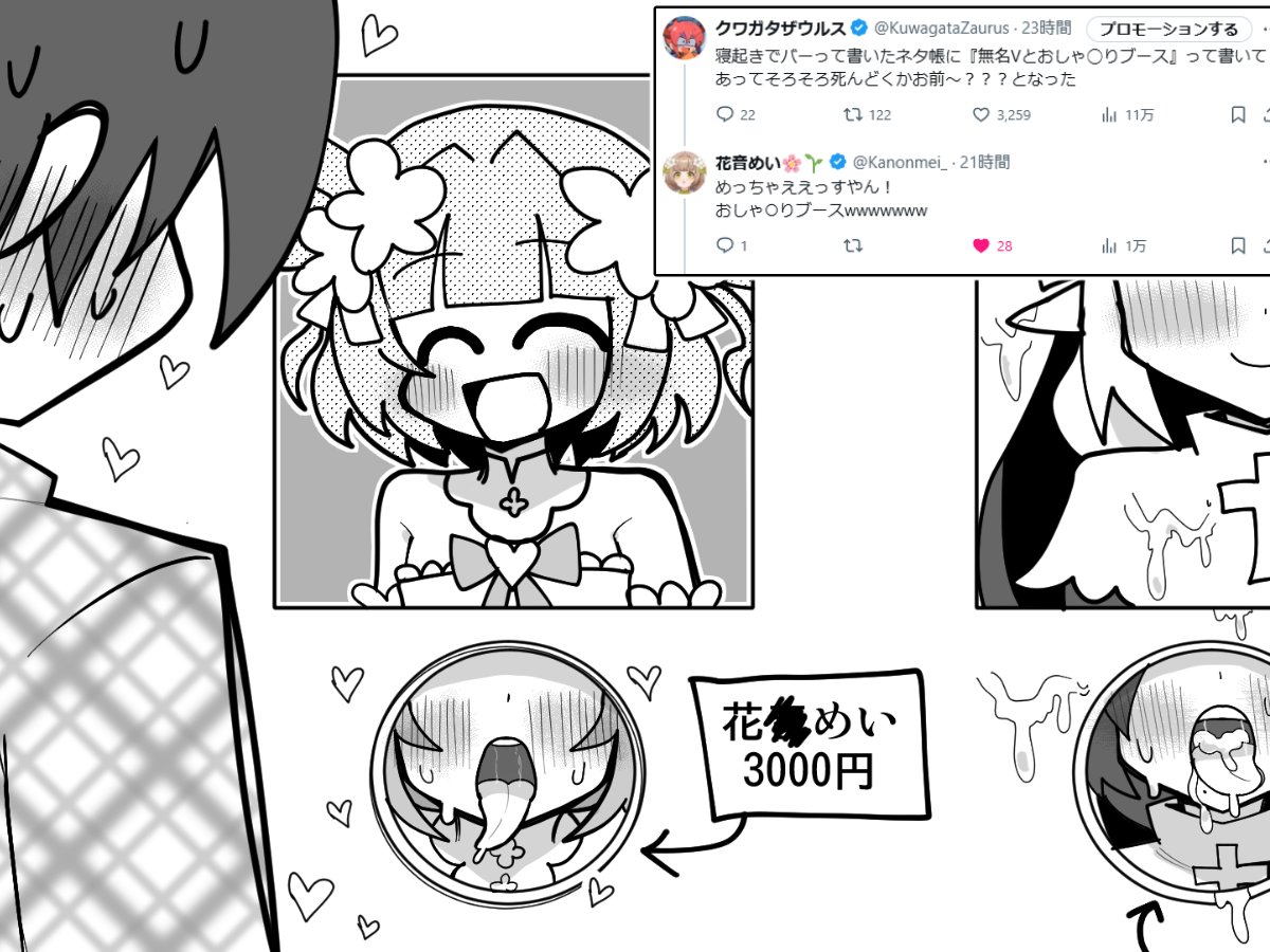 寝起きでバーって書いたネタ帳に『無名Vとおしゃ◯りブース』って書いてあってそろそろ死んどくかお前〜???となった